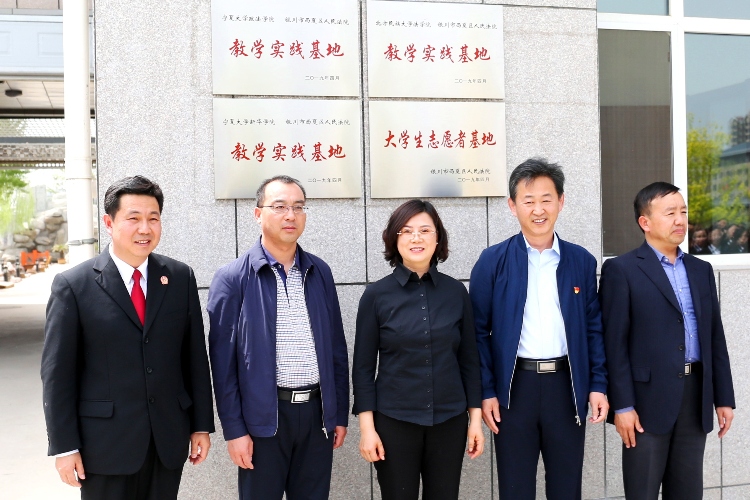 williamhill英国政william威廉英国党委书记潘瑞、北方民族大学william威廉英国党委书记郑彦平、williamhill英国新华学院副院长刘军红与西夏区人民法院院长马立新代表院校进行签约,西夏区纪委书记杨爱军等领导一起为基地揭牌。