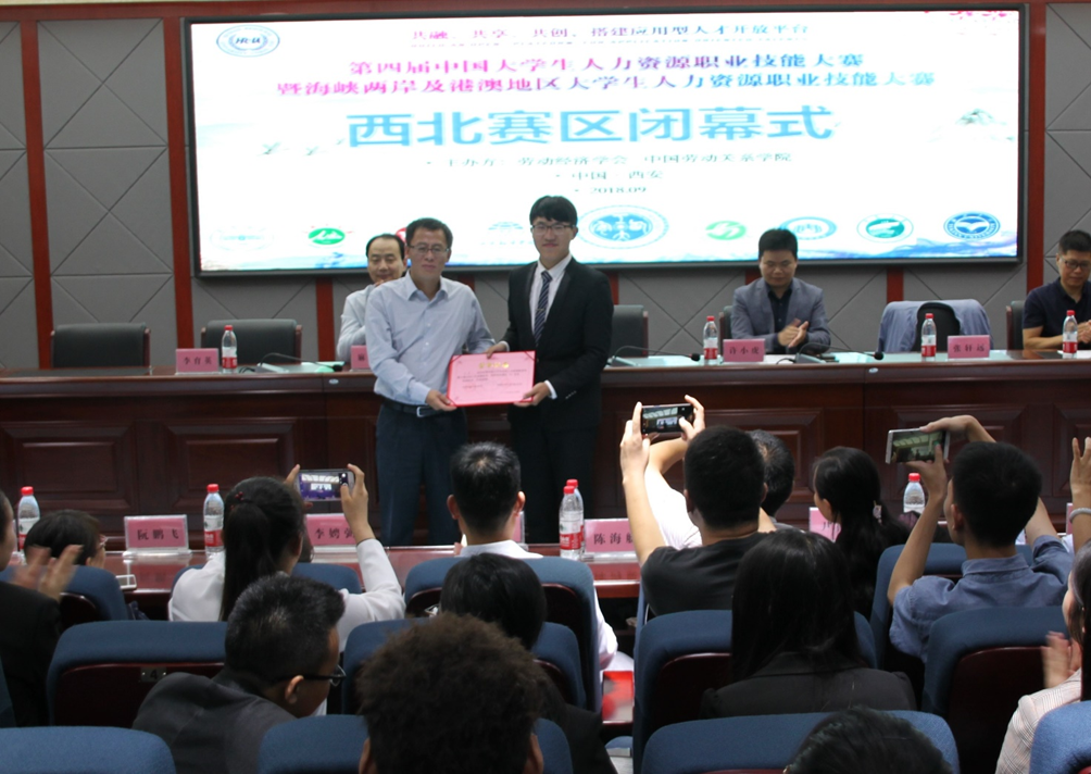 中国大学生人力资源职业技能大赛(HRU)是由劳动经济学会和中国劳动关系学院联合主办的一项全国性的顶级专业赛事。第四届中国大学生人力资源职业技能大赛以“共融、共享、共创、搭建应用型人才的开发平台”为主题,采用各高校校内预选、六大赛区分别进行、线上线下结合,赛事成绩多因素综合计分等模式。本次第四届中国大学生人力资源职业技能大赛西北赛区覆盖了陕西、甘肃、宁夏、青海、新疆,共九所高校参加。本次大赛共分为职场实战、案例分析、实务设计、无领导小组讨论等四个环节以及加分项英语演讲,四个赛场同时进行。为培养人力资源管理应用型人才,大赛各个环节,完全参照企业人力资源管理中常见的实际问题和案例情景进行设计,旨在检验各参赛高校人力资源管理专业学生实战技能和综合素养,检验学生是否符合企业人力资源管理的要求。本次大赛旨在通过竞赛搭建一个院校、企业共同参与的协同育人平台,增强学生、高校、企业互动,推进应用型人才开发研究深化发展,共同探讨人力资源管理实践教学新思路。