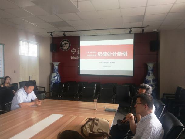 陈军胜副书记还单独用一部分内容来给大家介绍了一些违反条例的典型案例,并结合我们身边的实际案例来讲解,通过这种深入浅出的方式让我们教师党员对条例内容有了深刻的理解。