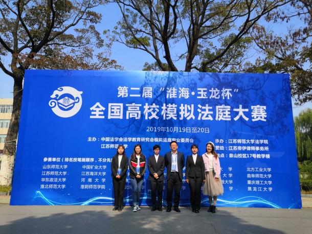 2019年10月20日,由中国法学会法学教育研究会模拟法庭专业委员会和江苏师范大学共同主办的“淮海·玉龙杯”全国高校模拟法庭大赛圆满落幕。我校代表队受邀参赛,以文书总分第二名的成绩荣获文书比赛二等奖,法学专业2017级本科生杨雅静、毛佳钰两位同学获得优秀辩手称号。