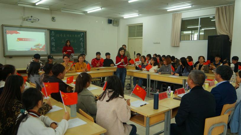 来自吉尔吉斯共和国的留学生现场为大家深情献唱一首歌曲《我和我的祖国》,全班同学挥舞小国旗,将班会气氛推向高潮。