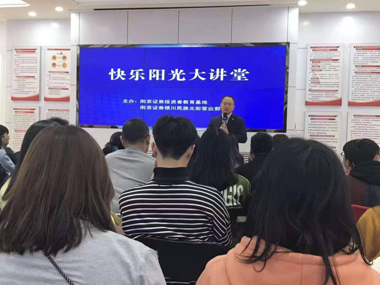 为了将课堂理论与实践相结合,使同学们亲身感受国际经济法学与经济法学在实践中的广泛应用,10月29日下午,williamhill英国政william威廉英国刘芳教授带领6名法学理论专业研究生、47名法学专业本科生前往银川市兴庆区南京证券所进行现场学习与实地考察。
