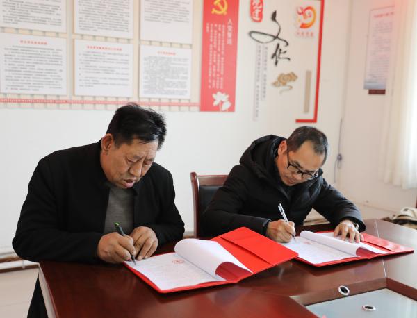 行政与行社系教工党支部(右)与月牙湖乡小塘村党支部(左)签订党建共建协议