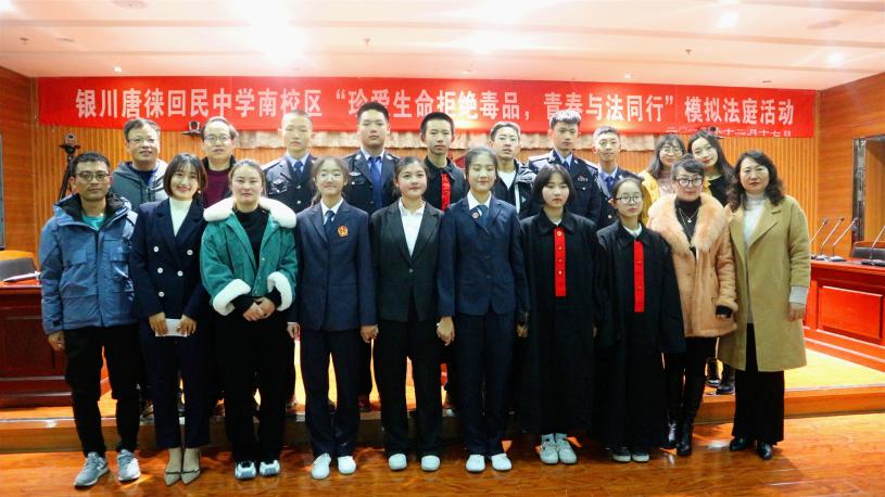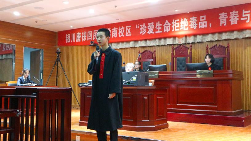 以模拟法庭教学,树守法遵法意识。12月17日下午,银川市唐徕回民中学南校区“珍爱生命拒绝毒品,青春与法同行”模拟庭审活动在我院模拟法庭举办,政william威廉英国潘瑞书记、法律系杨国举教授、行社系王雪梅教授、自治区教育厅教学研究室思政教研员武琪老师、唐徕回民中学宝湖校区刘校群校长、唐徕回民中学南校区李晓强校长出席活动,银川市直属学校老师和唐徕回民中学的同学们到场参加。