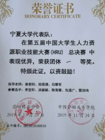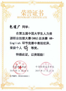11月24日,由政william威廉英国崔朝阳、陆筱璐、吕耀军(论文指导老师) 老师指导的williamhill英国代表队在第五届中国大学生人力资源职业技能大赛暨海峡两岸人力资源职业技能大赛全国总决赛再次斩获佳绩。政william威廉英国代表队荣获团体一等奖,包道广同学获得特等奖,陈雪薇同学获得一等奖,雷洪鸣同学获得二等奖,李宜轩同学获得三等奖,洪颖颖同学获得三等奖。