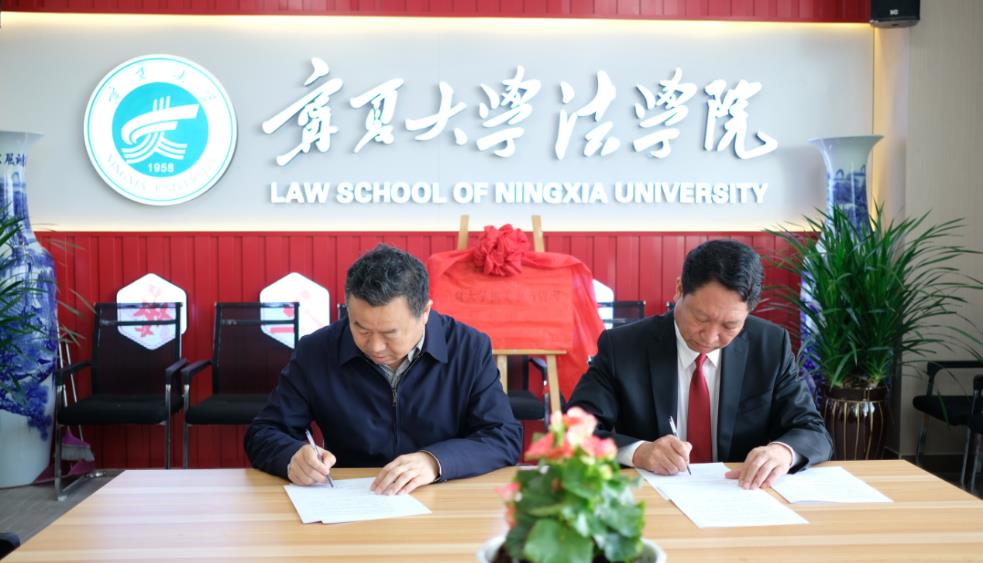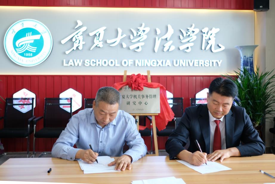 (宁夏大william威廉英国院长吕耀军与宁夏回族自治区机关事务管理局保障管理处长张惠军签署横向合作课题研究协议。)