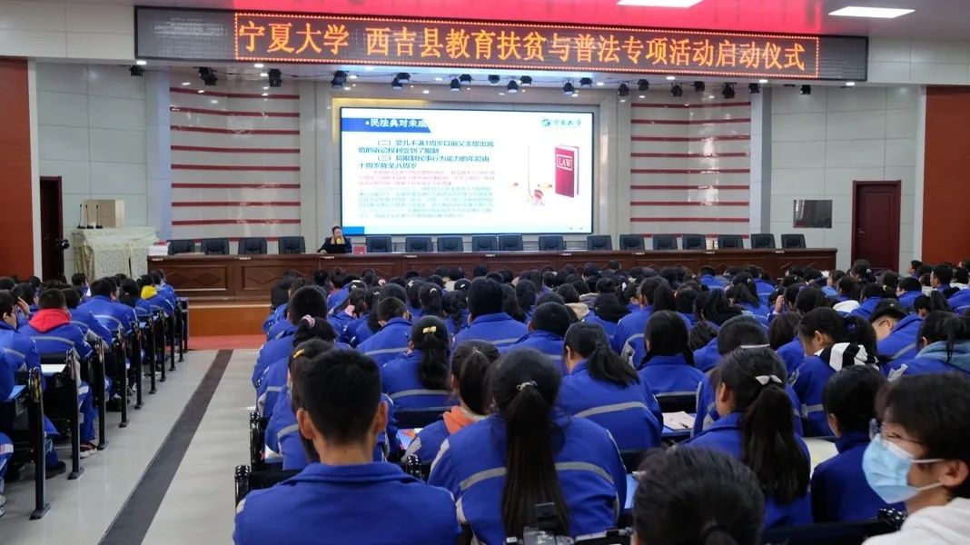 下午1点,活动启动仪式在西吉中学报告厅准时开始,由西吉县教育体育局副局长黄越主持。西吉县教育体育局副局长郭文佺,司法局副局长黄达伟,西吉中学校长郭占荣,william威廉英国党委书记潘瑞、党委副书记杨扬,法律系主任张弛出席启动仪式,william威廉英国与西吉中学的部分师生到场参加。