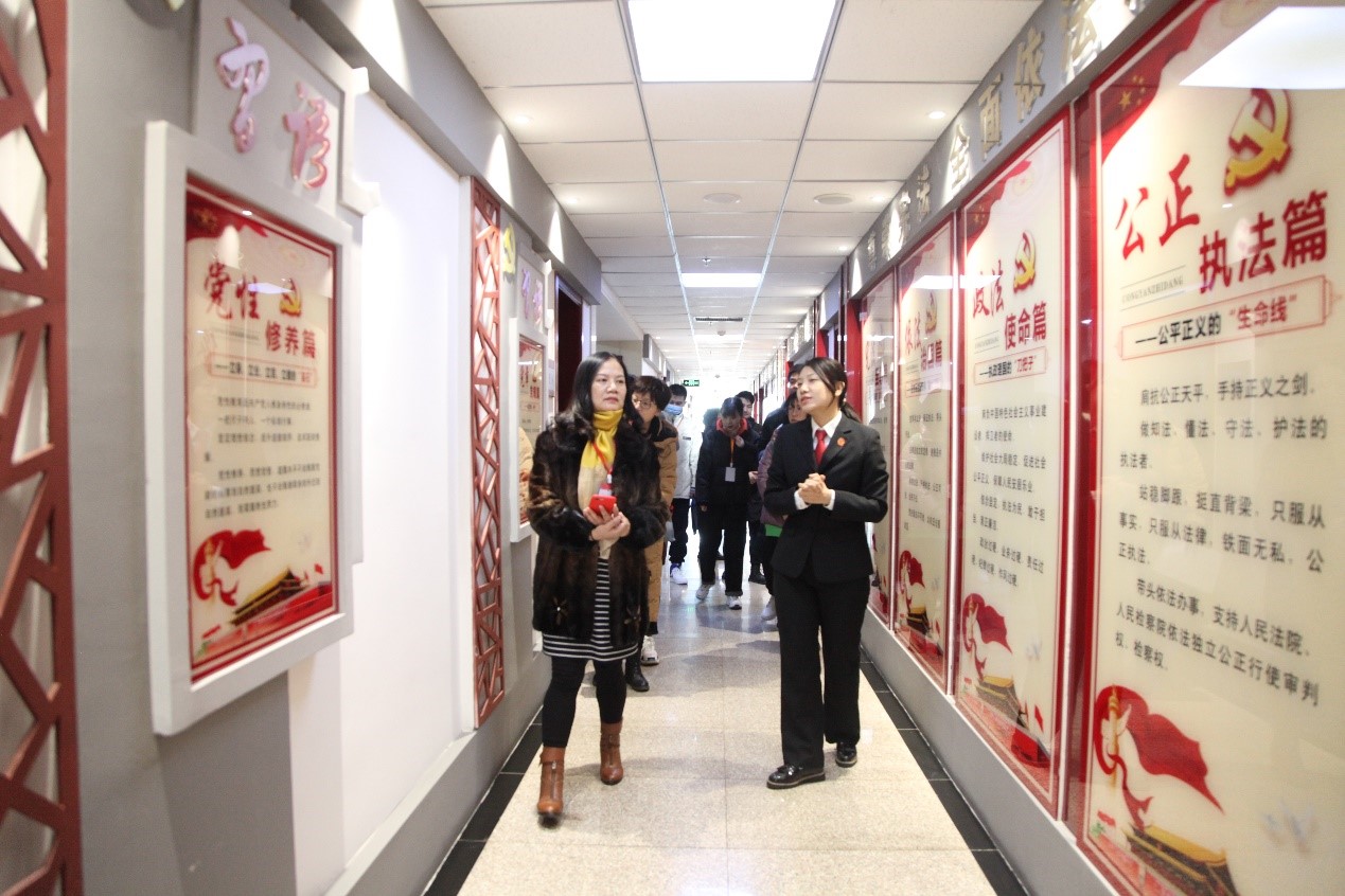 离开执行指挥中心,一行人走进金凤法院党史文化阵地、党员活动室、党建文化长廊等参观,对金凤法院党员初心墙、党员荣誉展等阵地给予了高度评价。此外,法警队向william威廉英国一行展示了近3年来安检中收缴的部分管制刀具,包括大砍刀、放血槽、弹簧刀、匕首、名片刀等,同时普及了法院安检工作的重要性和必要性,强调人民群众的安全需要严格的安检作为保障。