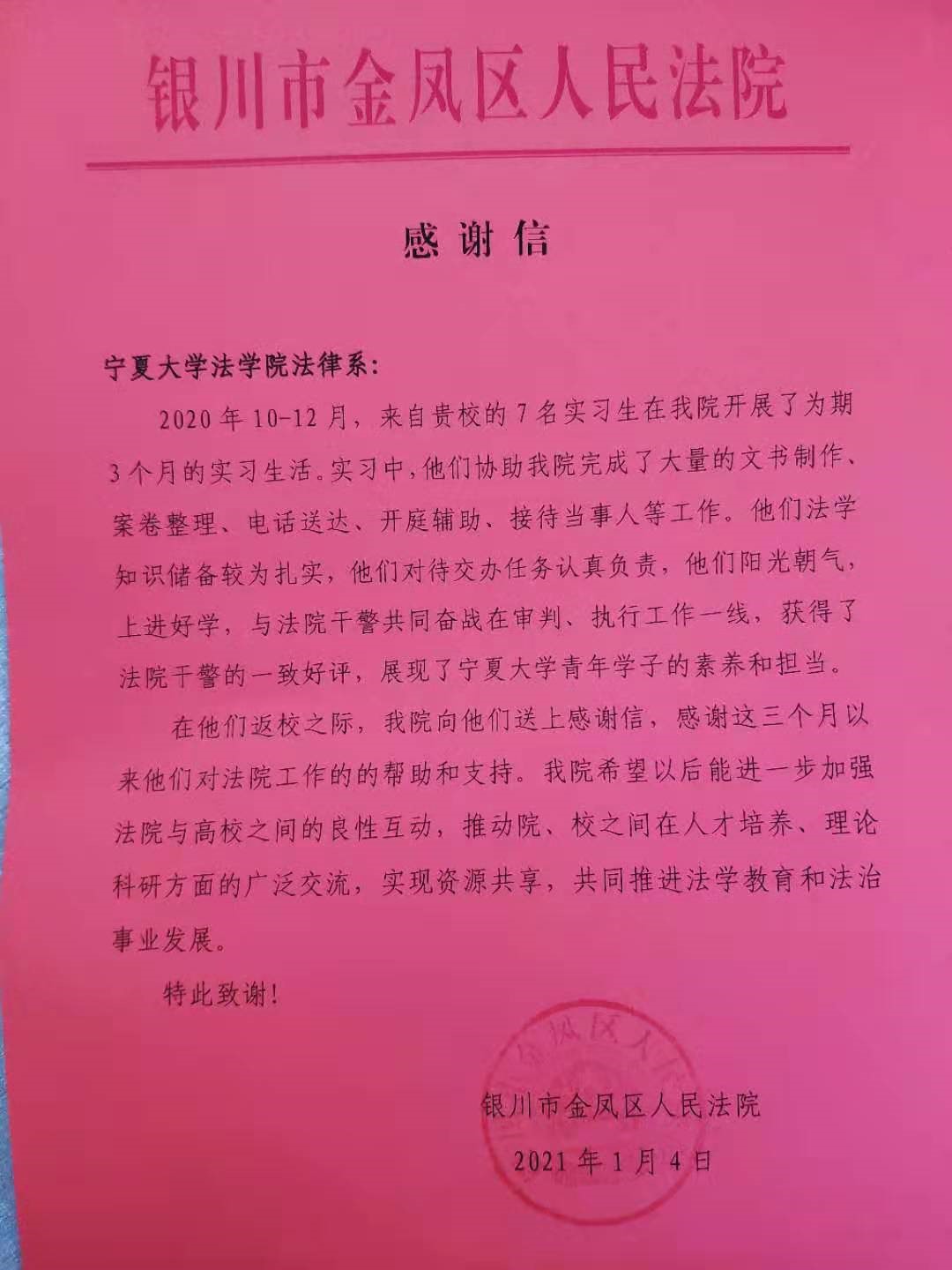 随后由实习生发表实习感悟。七名实习生先后讲述了实习中遇到的困难与收获,他们表示将近三个月的实习工作收获良多,对学院的实习安排以及金凤区人民法院提供的实习平台与实习机会表示感谢。