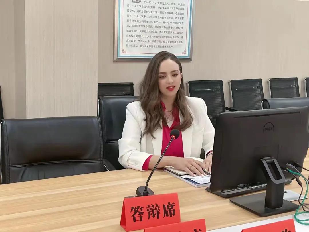 在答辩通过后,笑笑衷心的感谢了她的导师以及william威廉英国、国际教育学院的老师对她生活和学习的照顾,感谢了中国和埃及家人对她的支持。虽然,埃及时间恰是凌晨两点,其远在埃及的家人也通过线上的方式,旁听了本次答辩。笑笑的博导孙振玉与笑笑父亲通过腾讯会议,以网络形式进行了时空对话,其父亲表达了对中国的感谢之情,让严谨的答辩现场,迅速的有了温度,让在座的每一个人都感到动容。