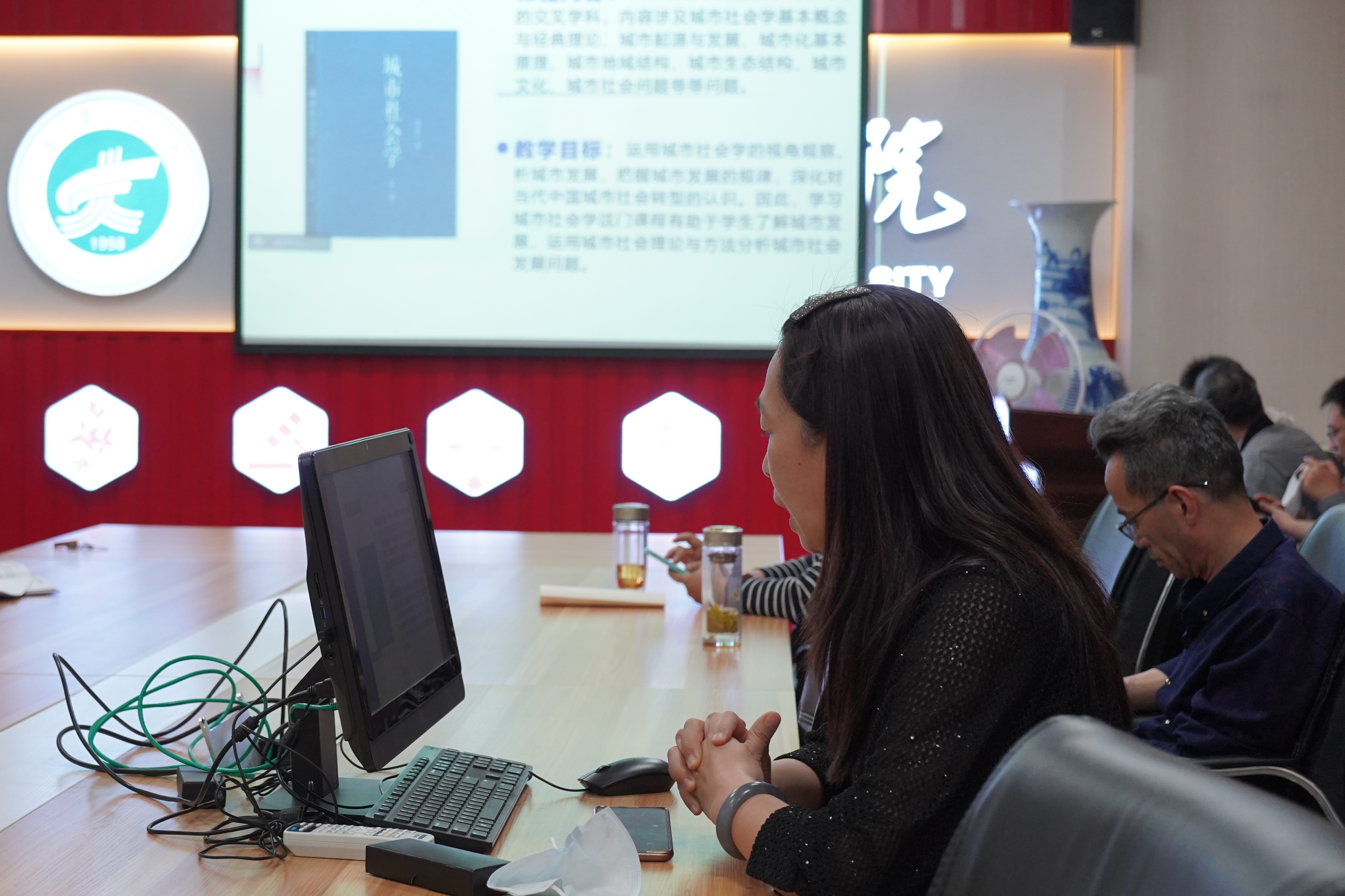 法律系刘芳围绕教师教学创新大赛作题为《经济法学》的课程汇报。她首先分享了关于该课程的理念与目标,指出该课程深入贯彻习近平法治思想,目标在于培养有“家国情怀,全球视野”的卓越的法治人才。她对该课程的主要内容进行介绍,包括深化立法工作、加快区域经济立法、完善金融立法等相关内容作了详细的讲解。她通过分享自己亲身的教学、调研经历和有关该课程的视频资料,讲解了有关课程的学情分析、课程思政、过程与方法、考评与反馈、文档规范和设计创新等内容;行社系张琴围绕《城市社会学》课程线下教学情况展开汇报,她从课程的内容出发,指出城市社会学是社会学与城市学的交叉学科,内容涵盖面广泛,涉及多方面的专业理论。她提到通过城市社会学的教学来帮助学生了解城市发展,培养学生运用城市社会理论与方法分析城市社会发展问题的能力。她以人口学、经济学、社会学、地理学等不同的角度,全面、广泛的讲解了城市化的内涵,并综合分析了城市化在人口结构、经济结构、生活方式、地域空间四个方面的转型;行社系王俊丽通过腾讯会议围绕《社区工作》课程展开课程思政教学分享,她讲述了该课程主要面向本科二年级的学生,课程的主要内容围绕社会工作的价值观、理论基础、方法技巧和本土社区工作实务探索四大模块组成。她指出该课程的具体目标是将专业知识和价值观相融合,并以自己的教学经验分享了该课程的教学方法、教学设计举例等相关内容。