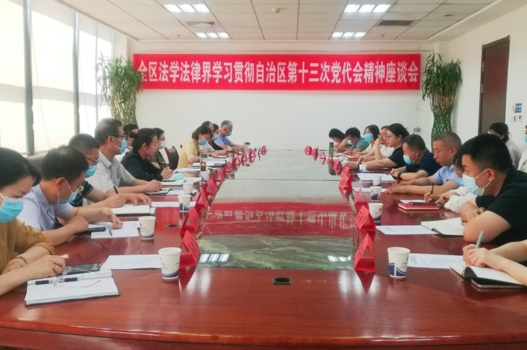 2022年6月17日,自治区法学会组织召开“全区法学法律界学习宣传贯彻自治区第十三次党代会精神座谈会”,认真学习、深入研讨、全面贯彻自治区第十三次党代会精神。自治区法学会党组书记、常务副会长张廉同志出席座谈会并讲话,我院院长吕耀军与会并作交流发言,畅谈了学习体会和感悟。与会代表一致认为,自治区第十三次党代会坚持以习近平新时代中国特色社会主义思想为指导,深入学习贯彻习近平总书记视察宁夏重要讲话和重要指示批示精神,描绘了全面建设社会主义现代化美丽新宁夏的美好蓝图,是一次牢记领袖嘱托、感恩奋进新征程的大会,是一次描绘美好蓝图、凝心聚力谋发展的大会,是一次提振信心决心、团结奋斗开局的大会。全区法学法律界和广大法学法律工作者要坚定忠诚核心、拥护核心、跟随核心、捍卫核心的政治自觉,坚定感党恩、听党话、跟党走的行动自觉,坚定担当重任、砥砺前行的信心决心,用党代会精神凝聚思想共识,勇担建设美丽新宁夏的使命任务。