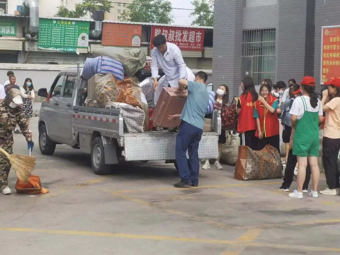 为更好地促进学生公寓科学化、规范化、长效化管理与服务,优化学生公寓的房源结构,有效解决学校宿舍紧张局面,按照学校统一安排部署,7月2日清晨,我院2019级本科生宿舍搬迁工作正式开启,学院党委书记李治涛、院长吕耀军、党委副书记杨扬、学生工作办公室主任王嘉豫、辅导员付晓晨前往现场指挥、协调搬迁工作,另有30余名志愿者参与其中,共同助力搬迁工作顺利进行。在贺兰山校区的搬迁现场,李治涛书记亲自上阵,协助同学们将行李装车。