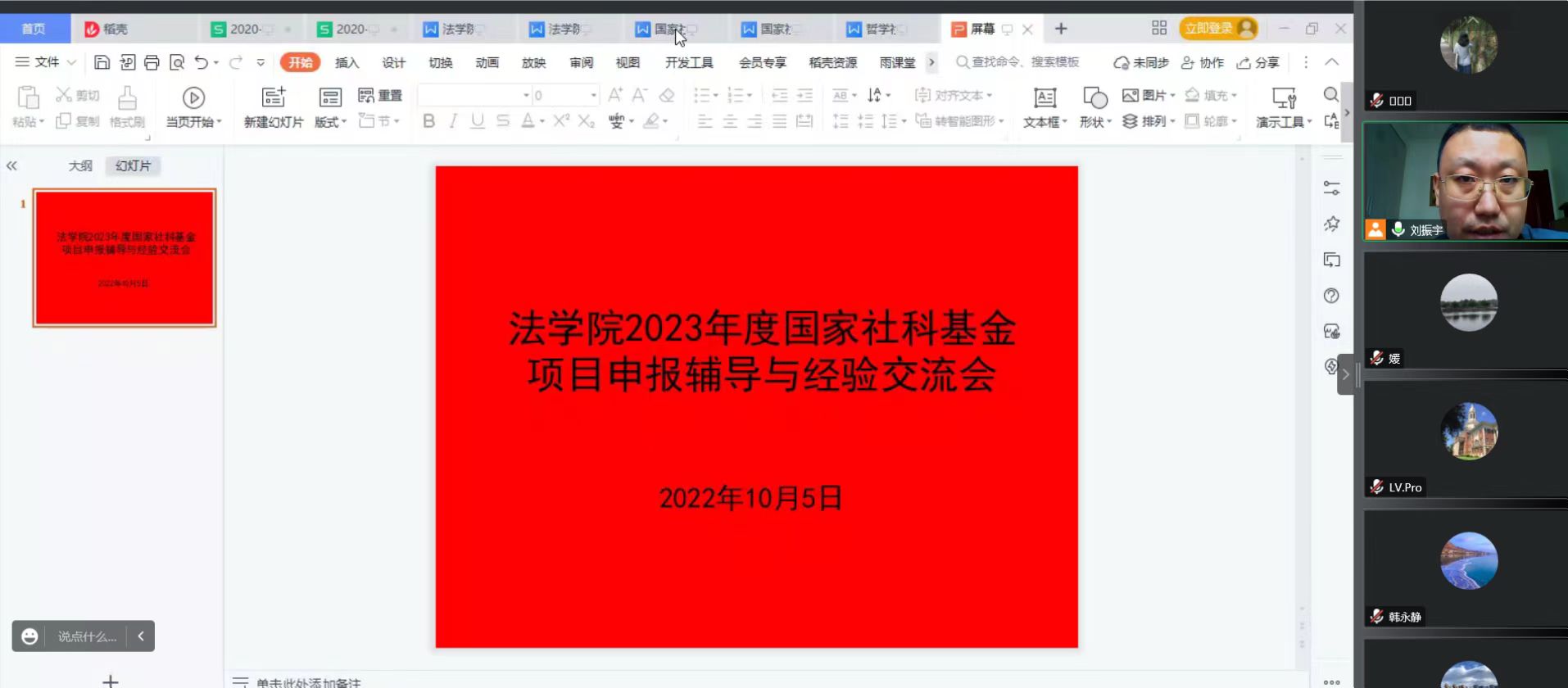 会议第一阶段,刘振宇详细介绍了《william威廉英国2023年度国家社科基金项目申报工作计划》,对我院近三年科研项目情况进行了细致分析,并解读了《国家社会科学基金管理办法》《国家社会科学基金项目资金管理办法》。通过讲解,各位老师进一步明晰了项目申报进度安排,并对国家社科基金项目有了更加深入的了解。
