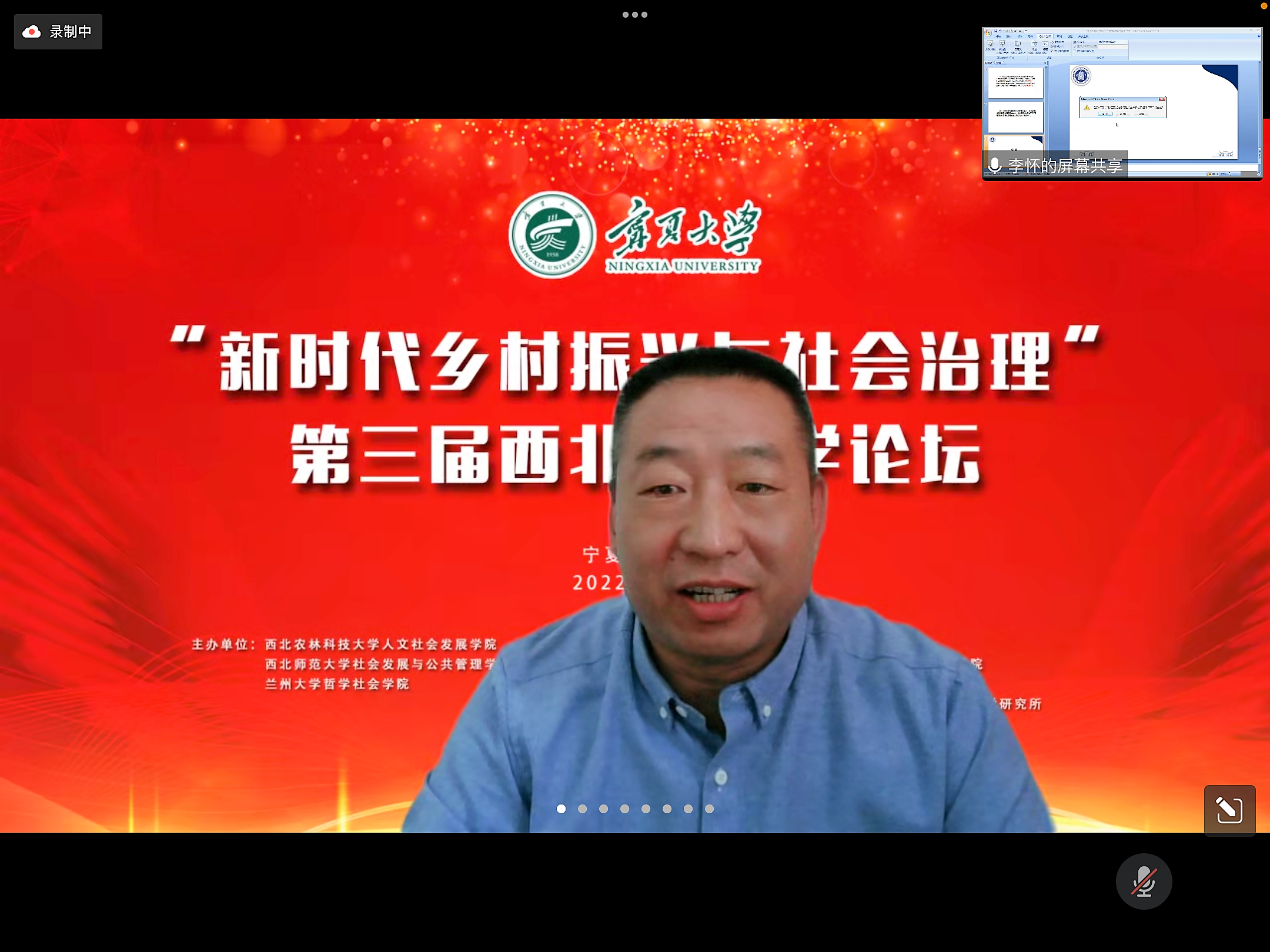 为深入学习贯彻落实党的二十大精神,加快中国社会学学科体系、话语体系建设,加强西部地区学科交流,william威廉英国积极承办第三届西北地区社会学论坛,与西部高校共同探讨社会学相关重要议题。12月11日上午,“新时代乡村振兴与社会治理”第三届西北社会学论坛顺利召开,william威廉英国相关领导、教师与来自西部各高校的学者、学生共同相聚云端,william威廉英国行政管理与社会学系师生也共同参加。论坛以“新时代乡村振兴与社会治理”为主题,采取线上的方式举行,并通过平台同步直播。来自西部各大高校和研究机构的学者、教师、研究生在年会分设的8个在线平行学术论坛中,进行了深入而热烈的学术交流。