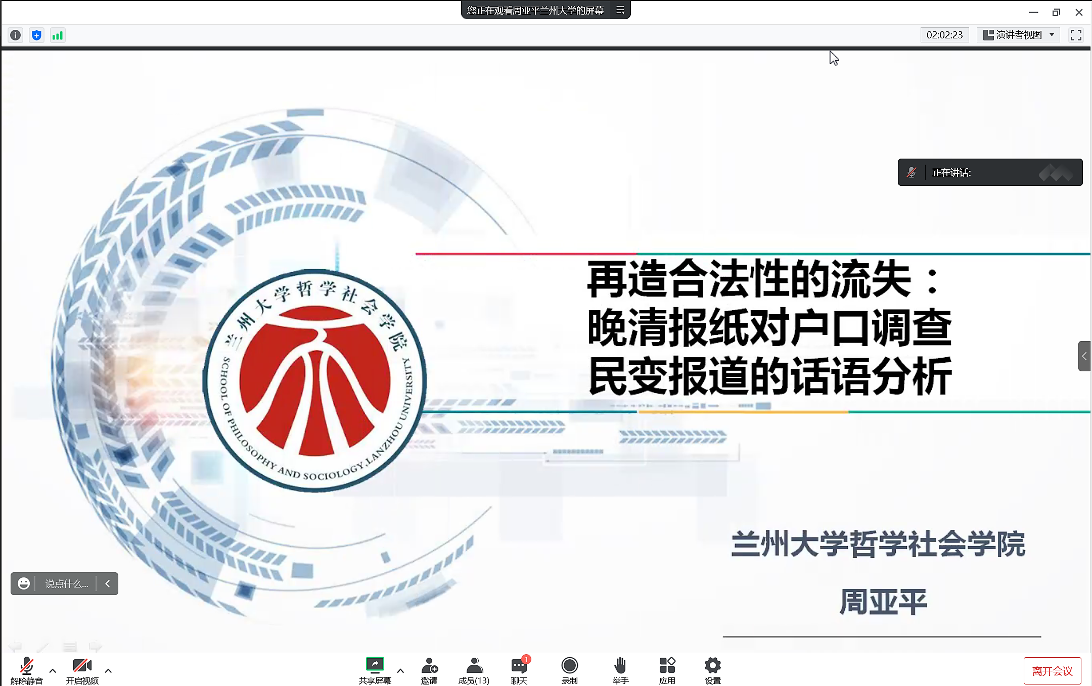 此次专题二分论坛由兰州大学哲学社会学院周亚平教授主持,宁夏社科院社会学法学研究所所长、研究员李保平担任与谈人,吕梁学院历史文化系李宁副教授、西北大学马克思主义学院副研究员马丽、青海师范大学法学与社会学学院曾吉卓玛副教授、青海大学民族学与社会学学院讲师章志敏参与报告。