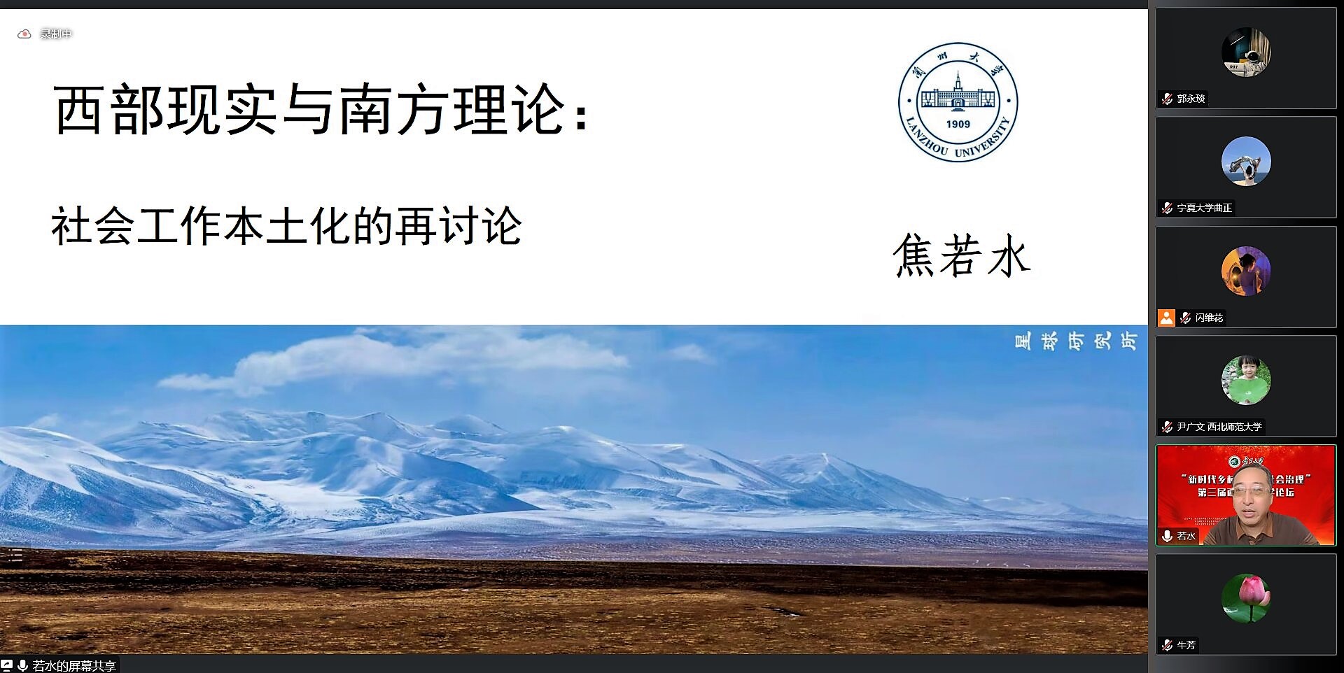 焦若水展开“西部现实与南方理论:社会工作本土化的再讨论”的主题报告;尹广文以“易地搬迁民族互嵌社区的空间生产与社会结构优化研究”为题做研究分析;牛芳分析了对留守儿童进行预防性侵害教育的重要性;尕藏以青海德吉村为例介绍了青海涉藏洲县农牧区基层社会组织的创新发展;王雪梅以“能力、稳定与保障:西北地区儿童主任履职问题分析——以‘护童项目’H县为例”做了专题分析。