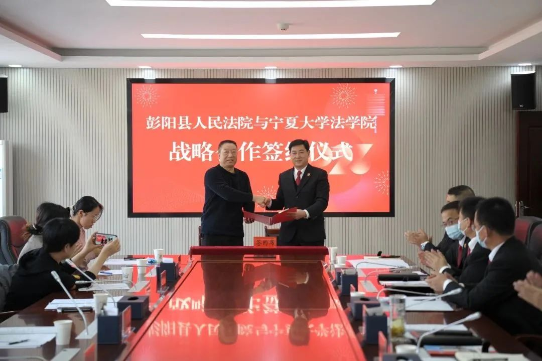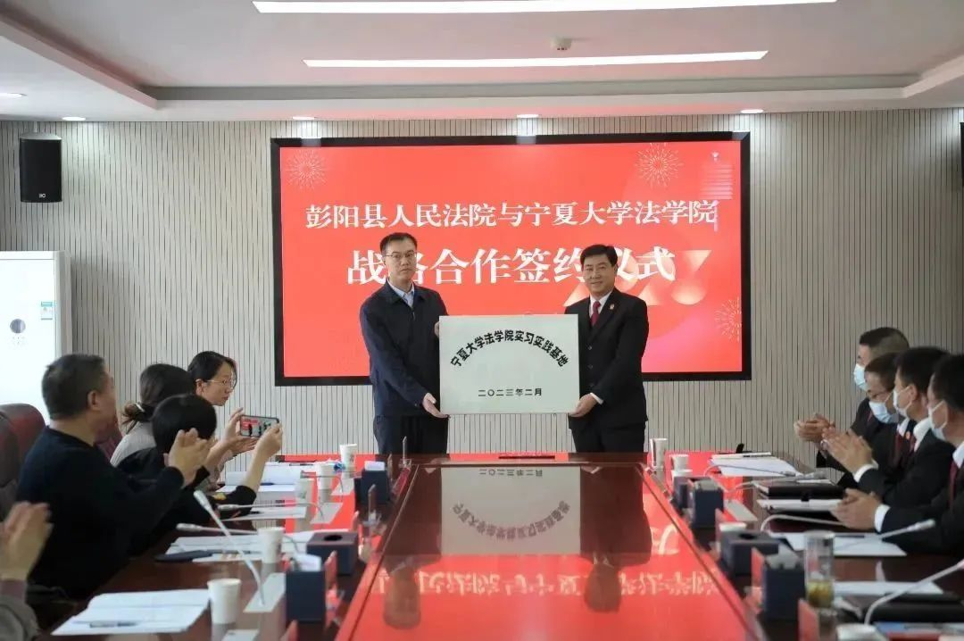 吕耀军对彭阳法院的热情接待和周密安排表示感谢,并介绍了双方合作的前期基础与合作愿景。随后,双方围绕法治人才培养、重大课题研究、疑难复杂案件探讨等问题进行了充分讨论,达成了一致意见,并进行了签约和授牌。