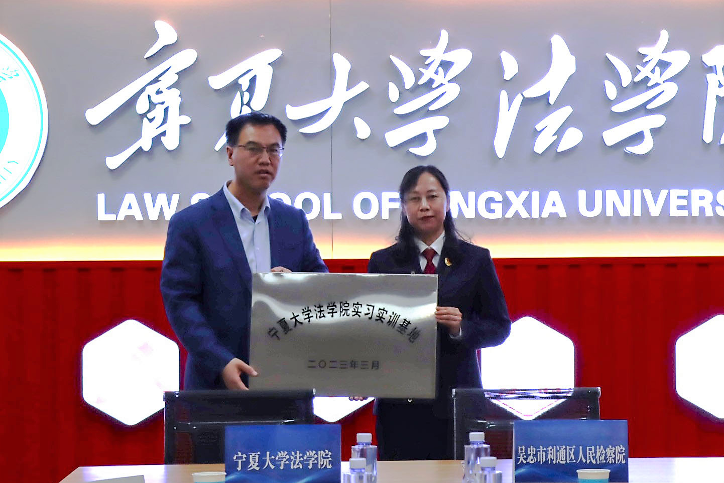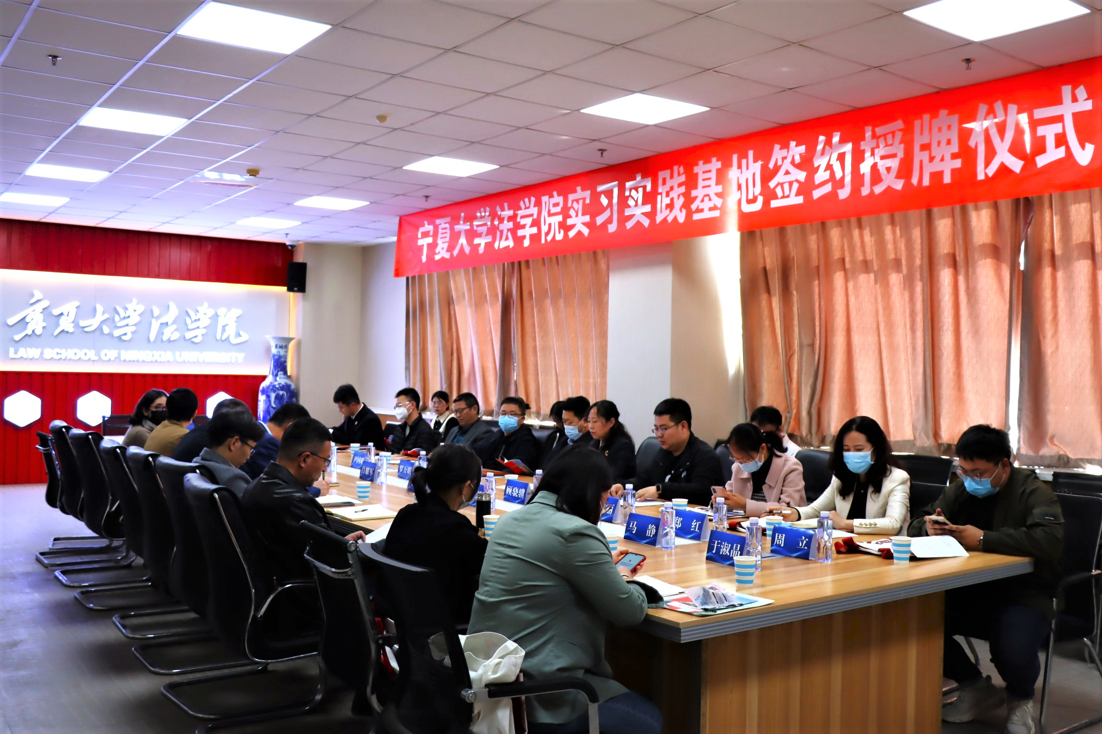 宁夏机关事务管理局保障管理处处长罗万明、副处长郑红,吴忠市利通区人民检察院党组成员副检察长杨学萍、党组成员政治部主任苏航,银川市西夏区民政局副局长尹国略、社会组织科副主任王甲丁,吴忠市红寺堡区司法局副局长顾骁骥、法治办主任马静,宁夏人力资源协会副会长张斐松、秘书长曹伟,宁夏启辰社会工作服务中心理事长王俊丽、项目主任于淑晶、周立受邀出席。参加会议的还有学院党委书记李治涛,院长吕耀军,副院长胡世恩、靳永雄,社会学专业负责人曲正,法学专业负责人戴新毅,行政管理专业负责人杨文林。会议由胡世恩主持。