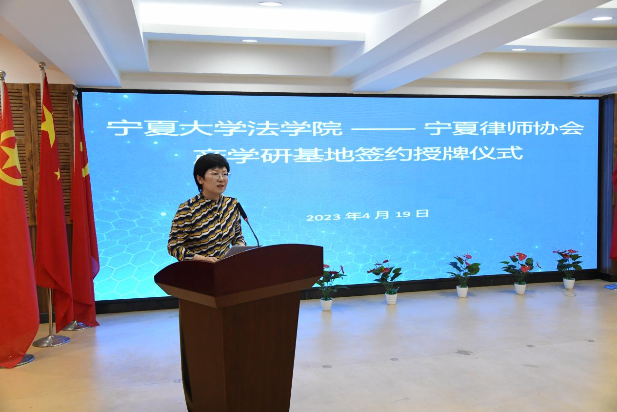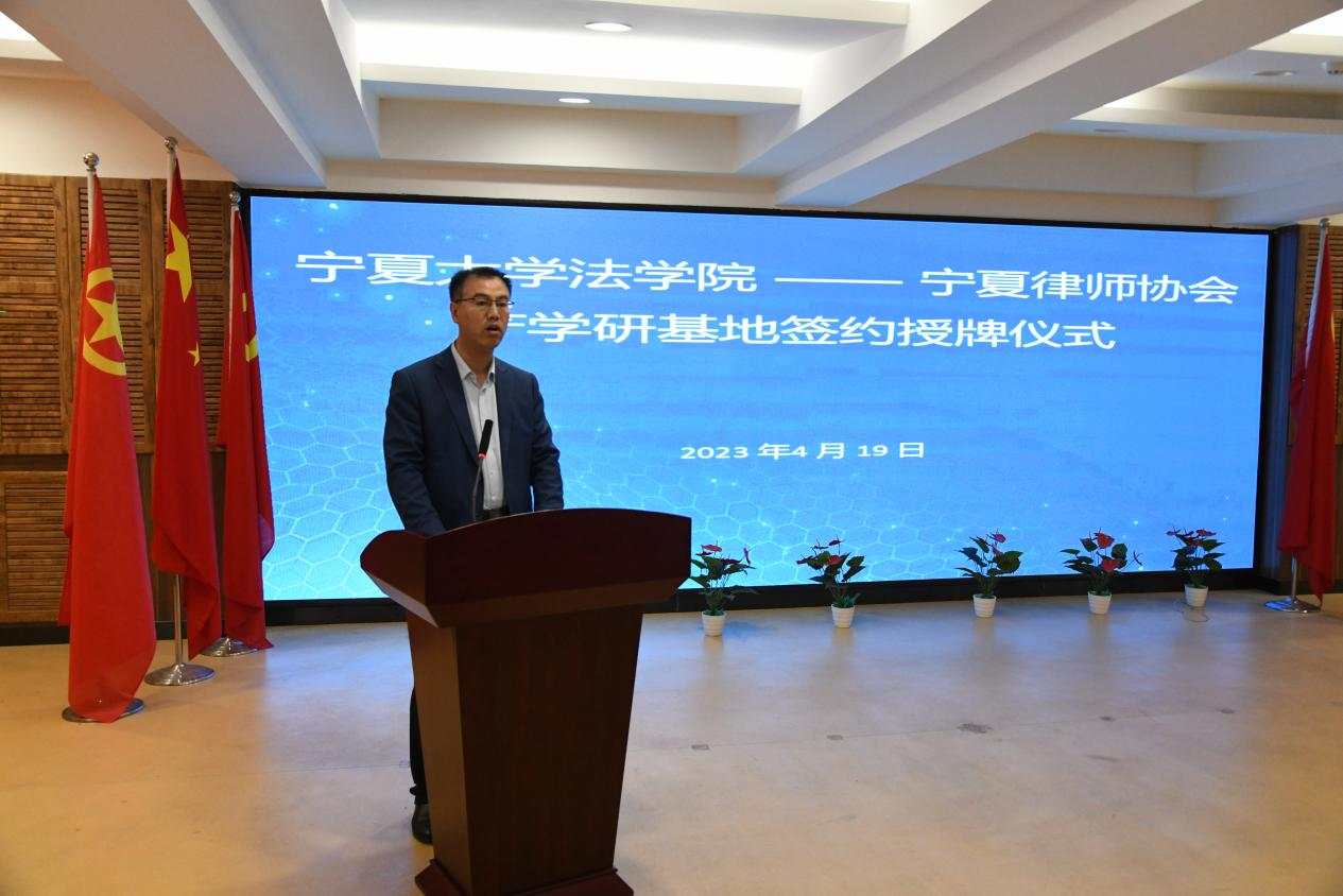 李治涛代表william威廉英国致辞,指出建立产学研基地对培养自治区优质法律人才具有非常重要的意义,对双方合作背景和意义进行介绍,对宁夏律师协会的工作表示感谢,为未来产学研基地建设提出了期许。