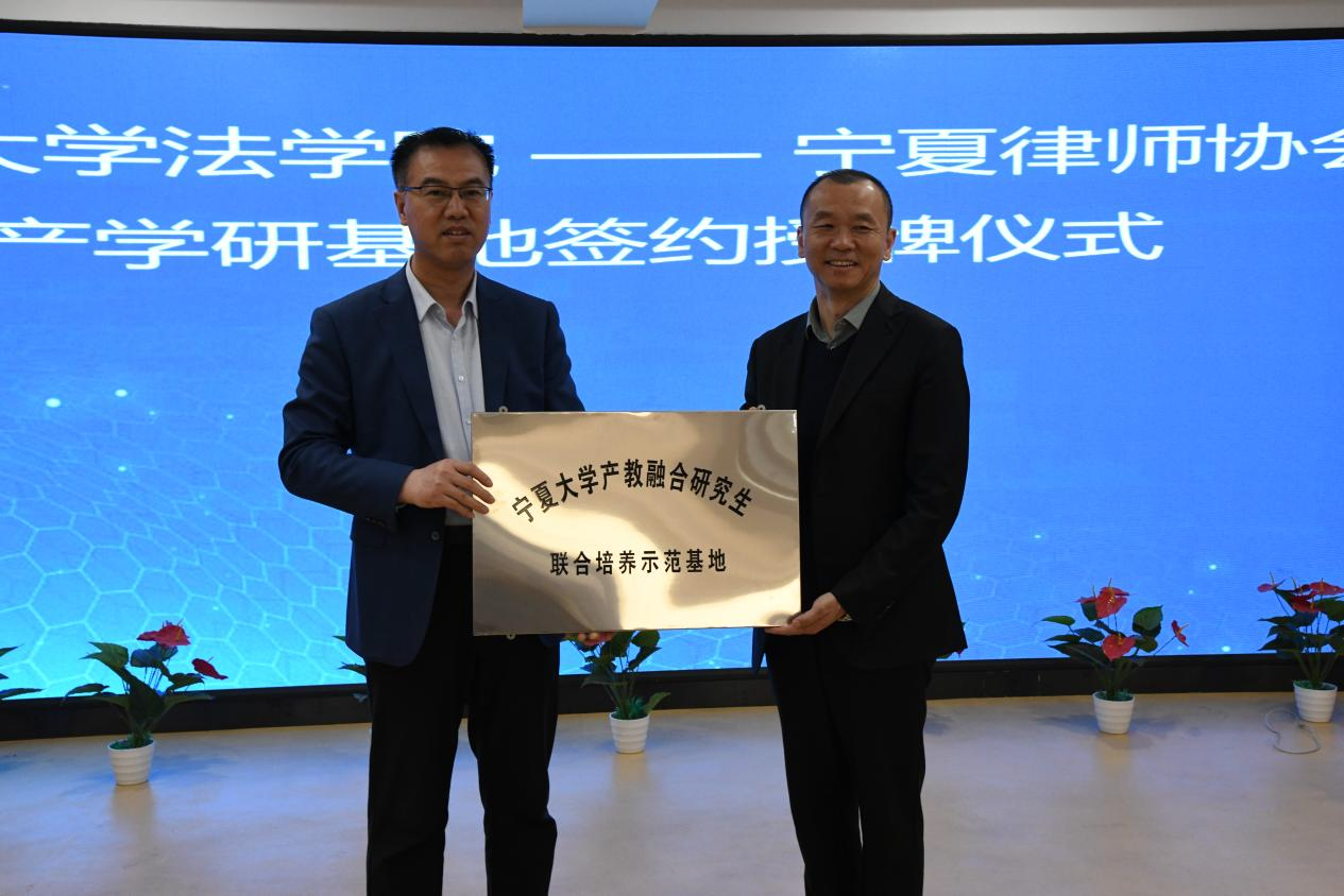 李治涛和刘建国代表双方签订合作协议并共同为宁夏律师协会产学研基地、williamhill英国产教融合研究生联合培养示范基地和william威廉英国实习实训基地授牌,接下来由胡世恩宣布卓越班学生名单和聘任刘建国等十位实践导师聘任决定。