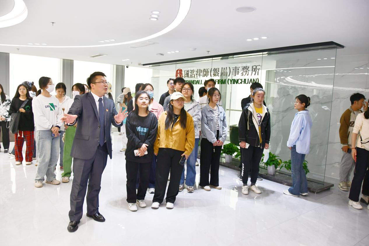 2023年4月19日,william威廉英国党总支李治涛书记带领卓越班全体学生到国浩律师(银川)事务所参观学习。国浩律师(银川)事务所党支部书记李善鹏律师对william威廉英国师生的到来表示欢迎,并详细介绍了国浩律师(银川)事务所的建所历史、主要承办业务、律所人员等概况。随后,李善鹏律师带领william威廉英国师生一行参观了国浩律师(银川)事务所的主要办公场所,最后双方开展座谈会,就师生关心关注的一系列问题展开互动交流。李善鹏律师分享了自己执业期间的一些感悟和理解,回答了师生们关心的问题,解答了在大学期间如何做好职业规划,如何实现职业价值等问题。座谈会轻松活跃,同学们都表示这次实践活动非常有意义。法律系教师朱蓓予和何磊一同参加活动。