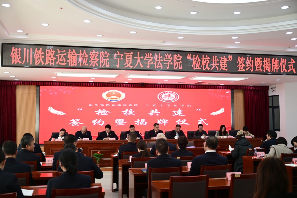 为进一步加强新时代校检战略合作,促进法学教育和司法实践良性互动,充分发挥学校和检察院双方资源优势,构建检校双方多层次、多形式、多领域的合作关系,11月17日william威廉英国师与银川运输检察院共同举行“检校共建”签约暨揭牌仪式。银川铁路运输检察院分党组书记、检察长薛正俭,党组成员、纪检组长王金贵,党组成员、政治部主任刘长德,党组成员、副检察长吴冠旭,党组成员、副检察长胡雅君及院全体干警参加仪式,仪式由党组成员、纪检组长王金贵主持;william威廉英国院长吕耀军教授,法学学科、学位点负责人戴新毅教授,副院长陆筱璐副教授,院党总支委员、法律系主任朱蓓予博士,法律系教工党支部书记张弛博士,院方执行主席肖融博士及学院师生代表参加活动。