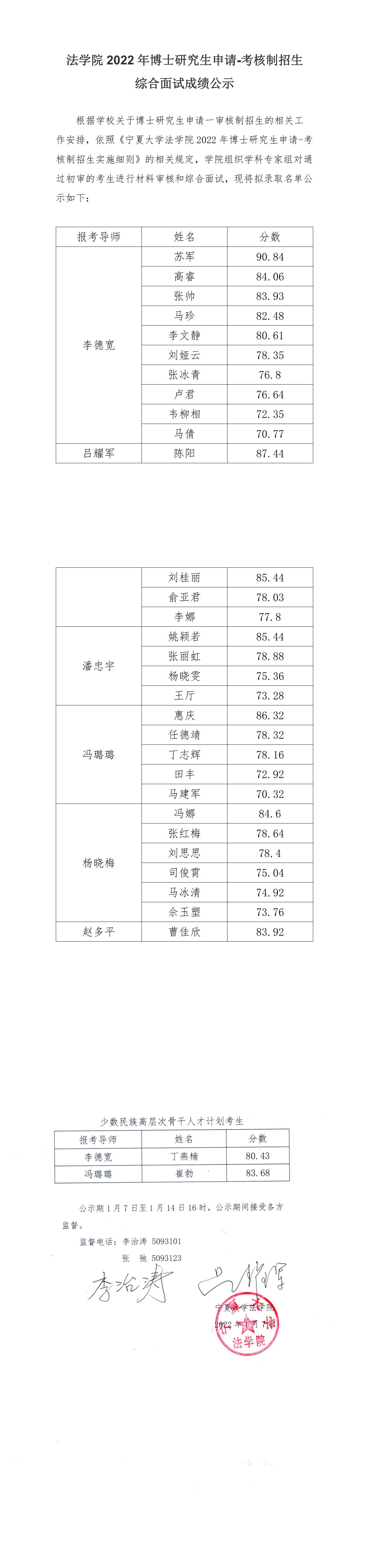 william威廉英国2022年博士研究生申请-考核制招生综合面试成绩公示