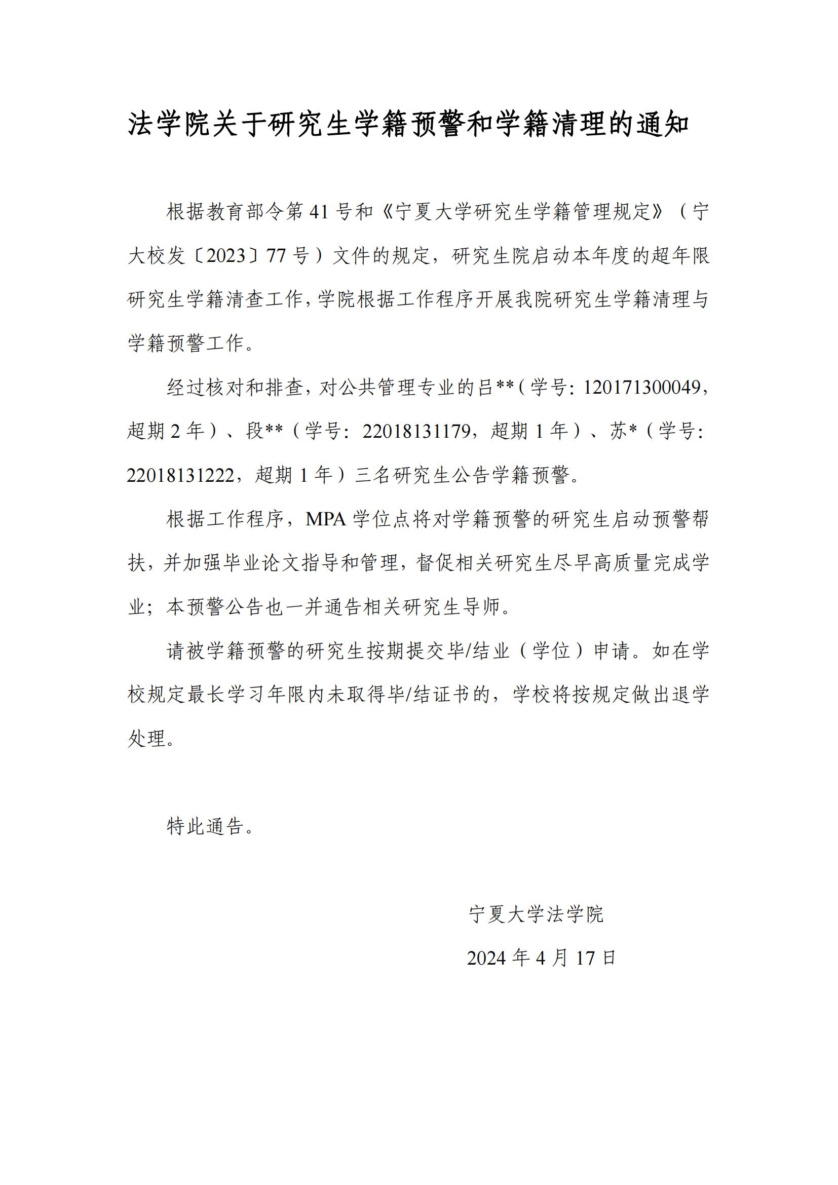 william威廉英国关于研究生学籍预警和学籍清理的通知
