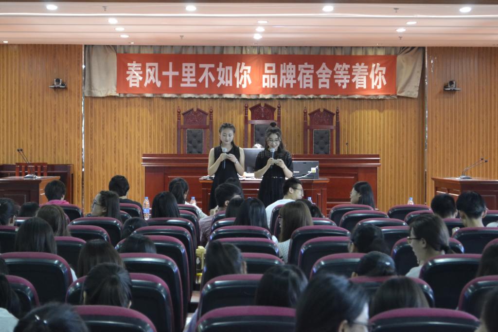 为丰富同学们课余文化生活,展现个人才智和集体精神,营造多姿多彩的校园文化环境,推动校园精神文明建设。5月24日晚7时,政william威廉英国在贺兰山校区文科楼模拟法庭举办了“灼灼宿舍,当尔室家”品牌宿舍大赛决赛。评委团由金小旖、乔婧两位16级辅导员和学院团委学生会主席团共同组成。全体大一学生观摩比赛。