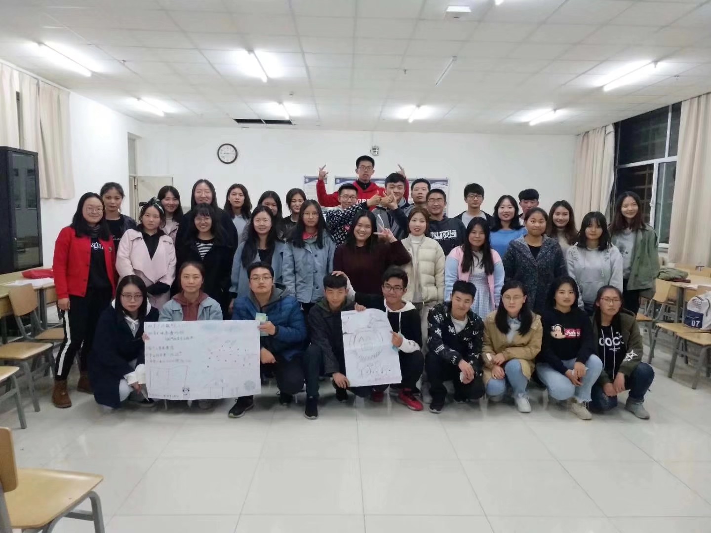 辅导活动伊始,学院朋辈心理辅导员对本次活动向同学们做了详细说明。在辅导活动中,同学们首先在朋辈心理辅导员的引导下,通过自我介绍、分组合作比拼等趣味活动,增进了同学间的感情,现场欢声笑语,气氛和谐温馨。同学们踊跃发言,总结自己入学以来所思所感所惑,朋辈心理辅导员认真解答了大家的疑惑,并组织同学们针对如何增强班级凝聚力展开了讨论。紧接着,各组同学齐心协力绘制班级理想蓝图,将自己对未来的期望凝于画纸之上,表露出对班级的祝福。最后,本次活动以同学们在照相机前的笑颜圆满结束。
