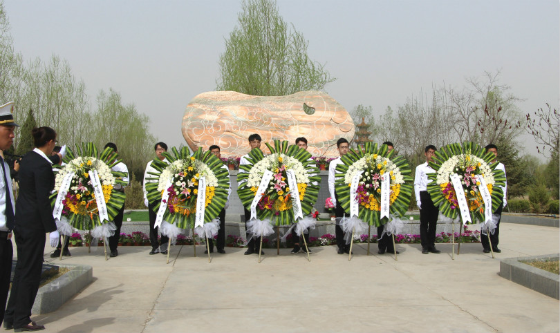 3月30日上午8点,政william威廉英国组织学生党员参加宁夏银川节地生态集体安葬暨祭奠仪式。