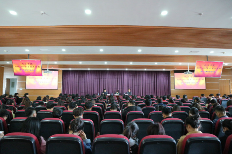新学期,新启航,为贯彻落实学校安全工作会议精神,确保两会期间学校安全稳定,按照学校总体要求和工作部署,3月4日下午三点,政william威廉英国在文荟楼二楼模拟法庭召开2017-2018学年第二学期第一次学生干部大会。学院党委书记潘瑞、副书记崔明堂、学办主任苏军峰出席会议,全体学生干部到场参会。