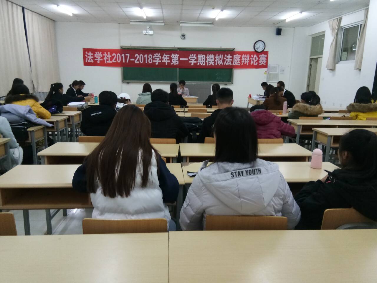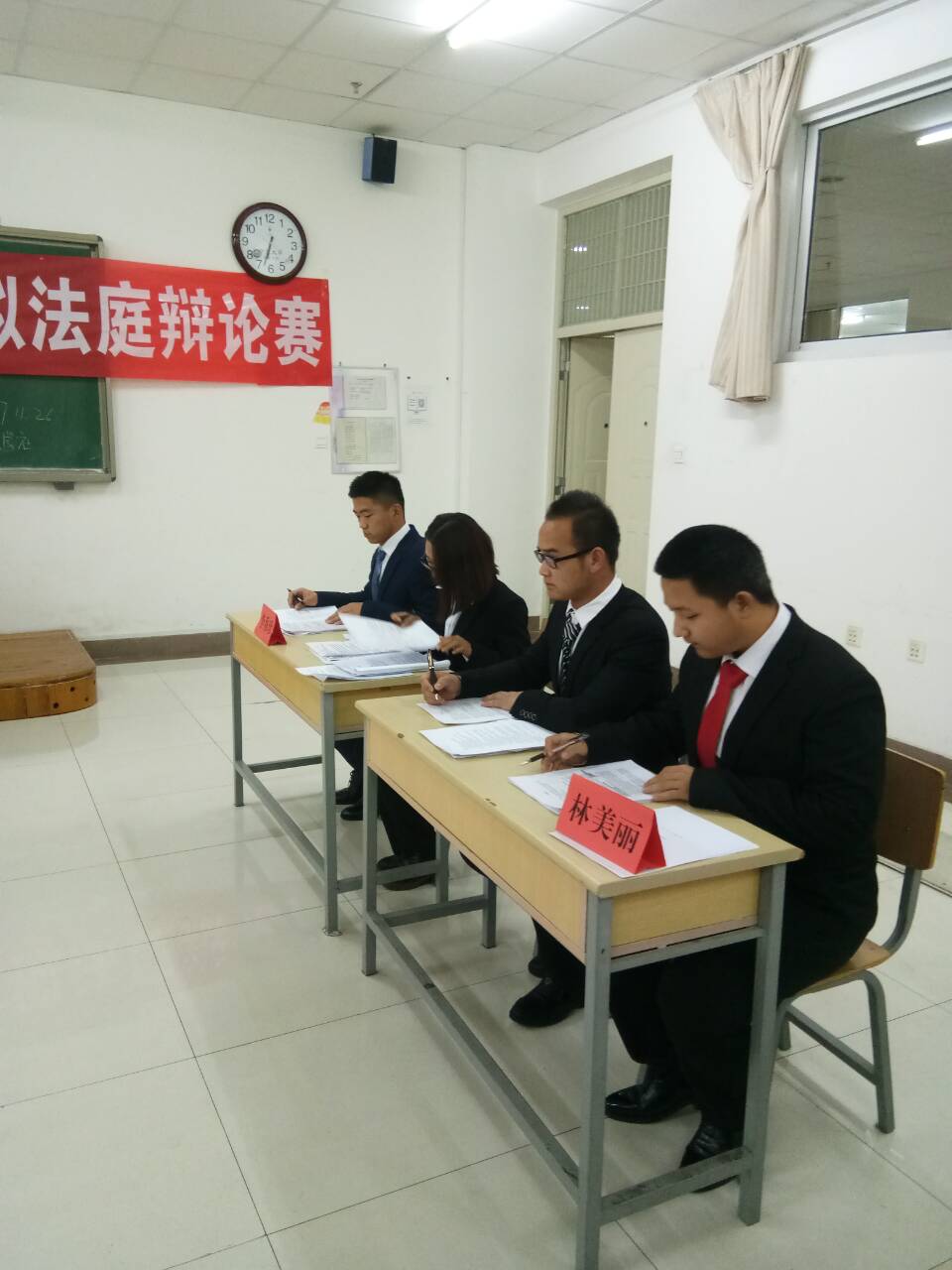 为激发法学专业学生对专业实务能力培养的学习兴趣,提升法庭辩论能力。11月26日晚18:30,由政william威廉英国法学社承办的“模拟法庭辩论赛”在贺兰山校区文荟楼401教室成功举办。法律系马浩丹老师受邀担任合议庭评审员,2017级法学专业全体同学到场观摩学习。