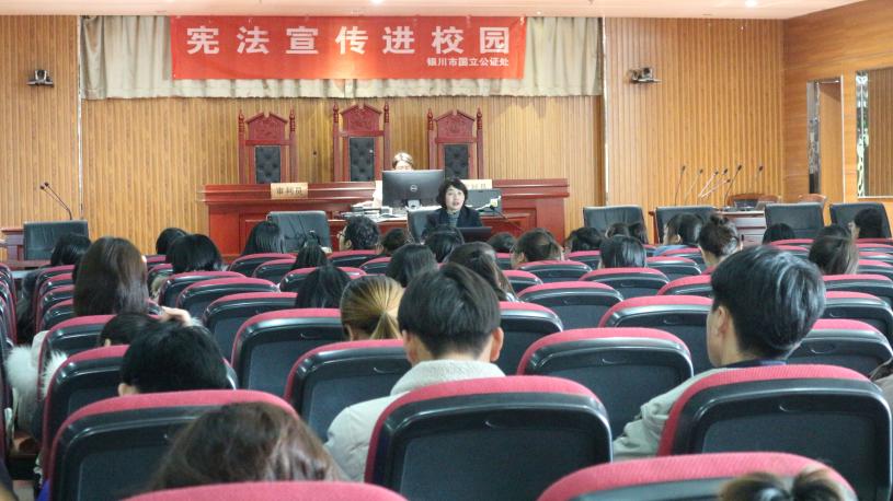 12月4日,williamhill英国政william威廉英国与银川市国立公证处联合举办“宪法进校园”主题讲座。讲座由政william威廉英国法律系主任张弛主持,银川市国立公证处公证员方小云担任主讲。