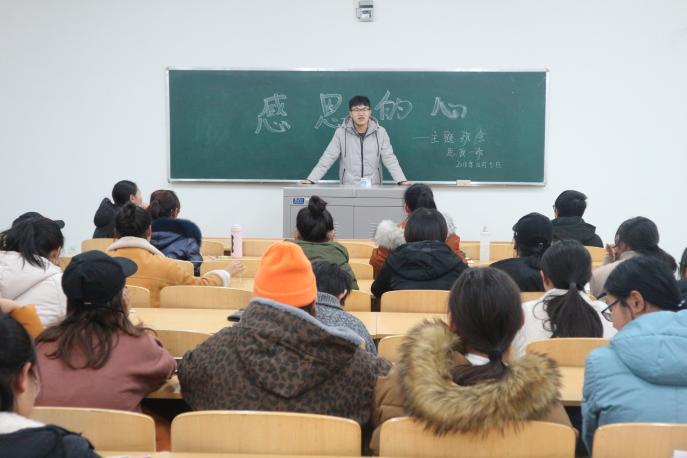 活动伊始,各班班主任助理对我校的资助政策进行了详细的解读,带领同学们共同学习了《williamhill英国奖助学金管理规定》,随后各班通过ppt讲解、讨论交流、主题发言等丰富多样的形式共诉感恩之情。接着学院从获得2018年国家奖学金、国家励志奖学金、以及感恩中国近现代科学家奖助学金中遴选了较突出的学生分别在各班分享自己在学习、竞赛、科技创新、回报社会等方面的经历及取得的成绩,如2016级思政专业包道广作为感恩中国近现代科学家奖学金的获得者,前不久刚刚获得共青团中央“强国一代新青年称号”,他的励志故事深深鼓舞着所有的同学。
