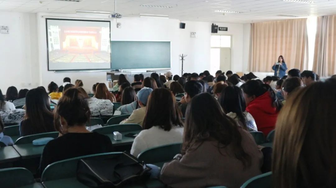最后,全场齐声高唱《歌唱祖国》,大会在激昂的歌声中结束。现场参与观看直播的同学们响起了激烈的掌声。