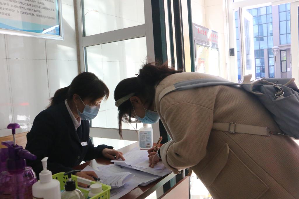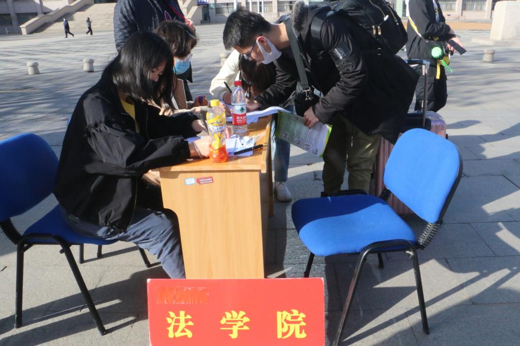 同学们佩戴口罩,携带行李,手持健康登记卡和健康码,整齐有序地排列在校门口等待通过测温通道。学院领导、辅导员、学生骨干和青年志愿者以饱满的工作热情和高昂的精神姿态迎接每一名返校同学,认真核对行程信息及健康状态的同时,提醒同学们进入宿舍要开窗通风、进行彻底的卫生清洁等一系列注意事项,并为同学们发放防疫健康手册。