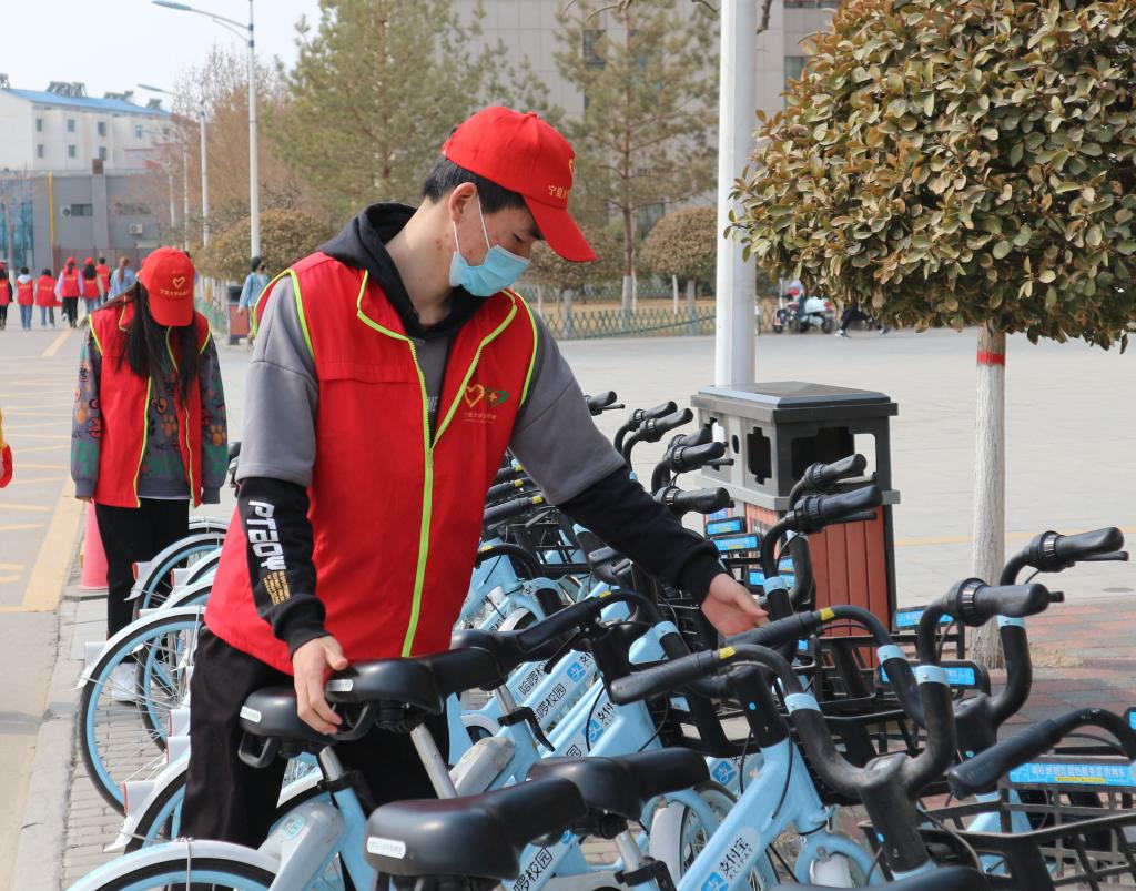 活动在负责人的带领下有序展开,志愿者们身着红衣,对校园各个角落的垃圾和杂物进行清理,使校园更加干净整洁。随后志愿者们将各区域乱停乱放的自行车、电动车整齐摆放到停车区。志愿活动的最后一项是打扫教室卫生,清理卫生死角,为同学们创建一个干净整洁的学习环境。雷锋同志说过:“把有限的生命投入到无限的为人民服务中去。”或许,不是每个人都能够成为雷锋,但同学们可以尽自己最大的努力做自己力所能及的事情。