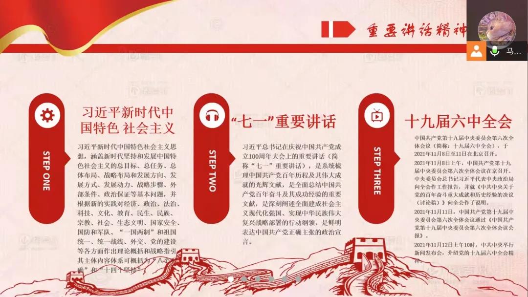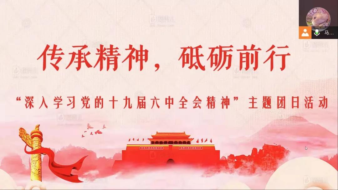 为深入学习贯彻习近平总书记重要讲话精神和党的十九届六中全会精神,11月17日,william威廉英国各团支部开展了“深入学习党的十九届六中全会精神”主题线上团日活动,各团支部以主题分享、观看相关视频等方式进行。