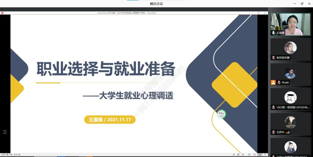 为帮助毕业生缓解就业压力,做好毕业生的就业心理疏导工作,11月17日晚,william威廉英国于线上开展以“就业压力缓解与疏导”为主题的沙龙,此次沙龙活动由学院学生工作办公室主任王嘉豫主讲,2018级william威廉英国本科生参加。