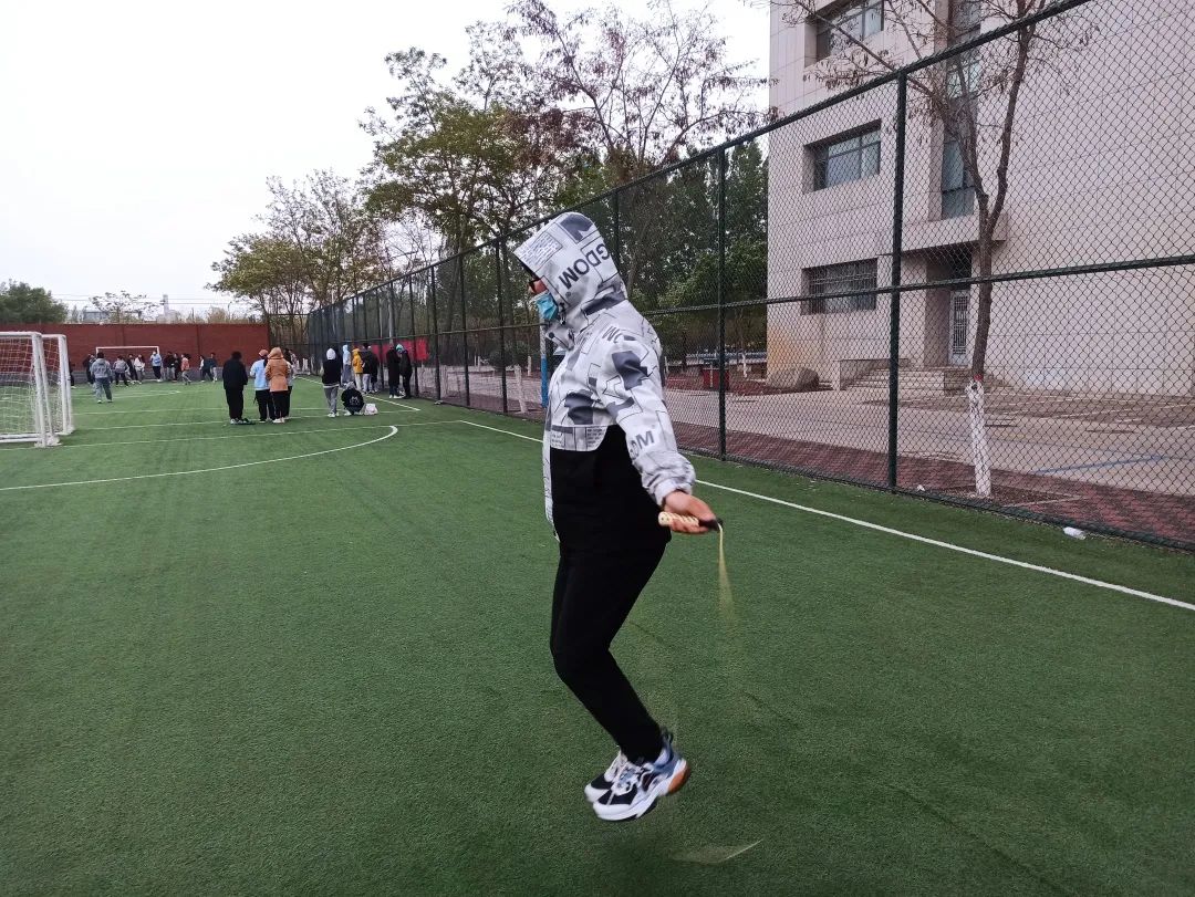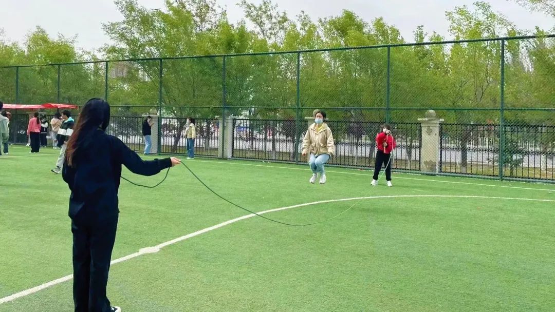 多人长绳比赛:灵巧的小跳,轻轻一跃,如海上的浪花,似矫健的云燕,翻飞的绳,摇动着健身的欢畅,矫健的身姿,舒展在操场之上。参赛的每一位同学,每一个团队,都牵动着在场所有人的心。大家彼此加油、呐喊,现场的气氛热烈又活泼。这不单是智慧与体力的角逐,更是团结与协作的完美比拼,同学们的默契配合让比赛现场更加趣味横生。