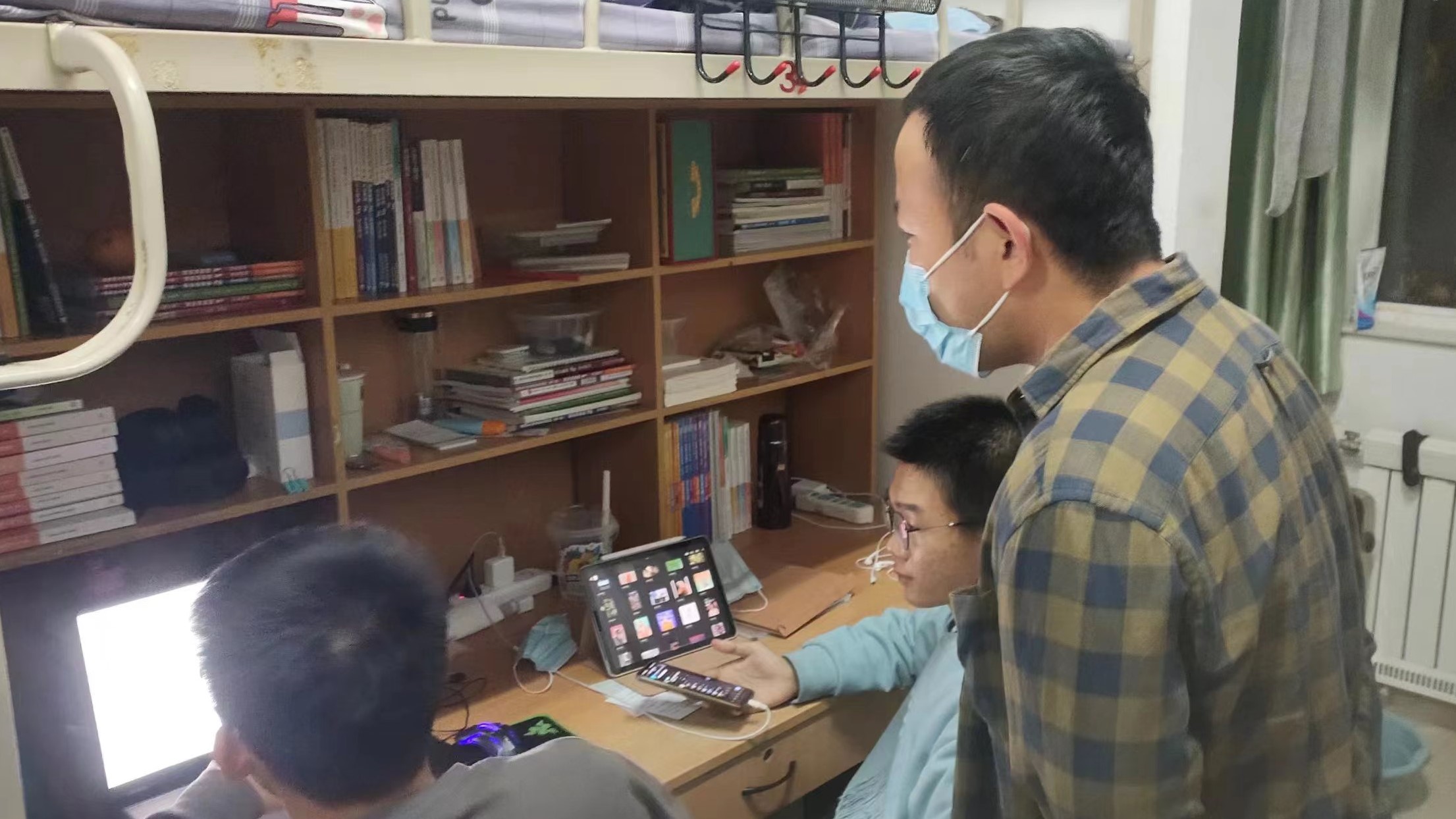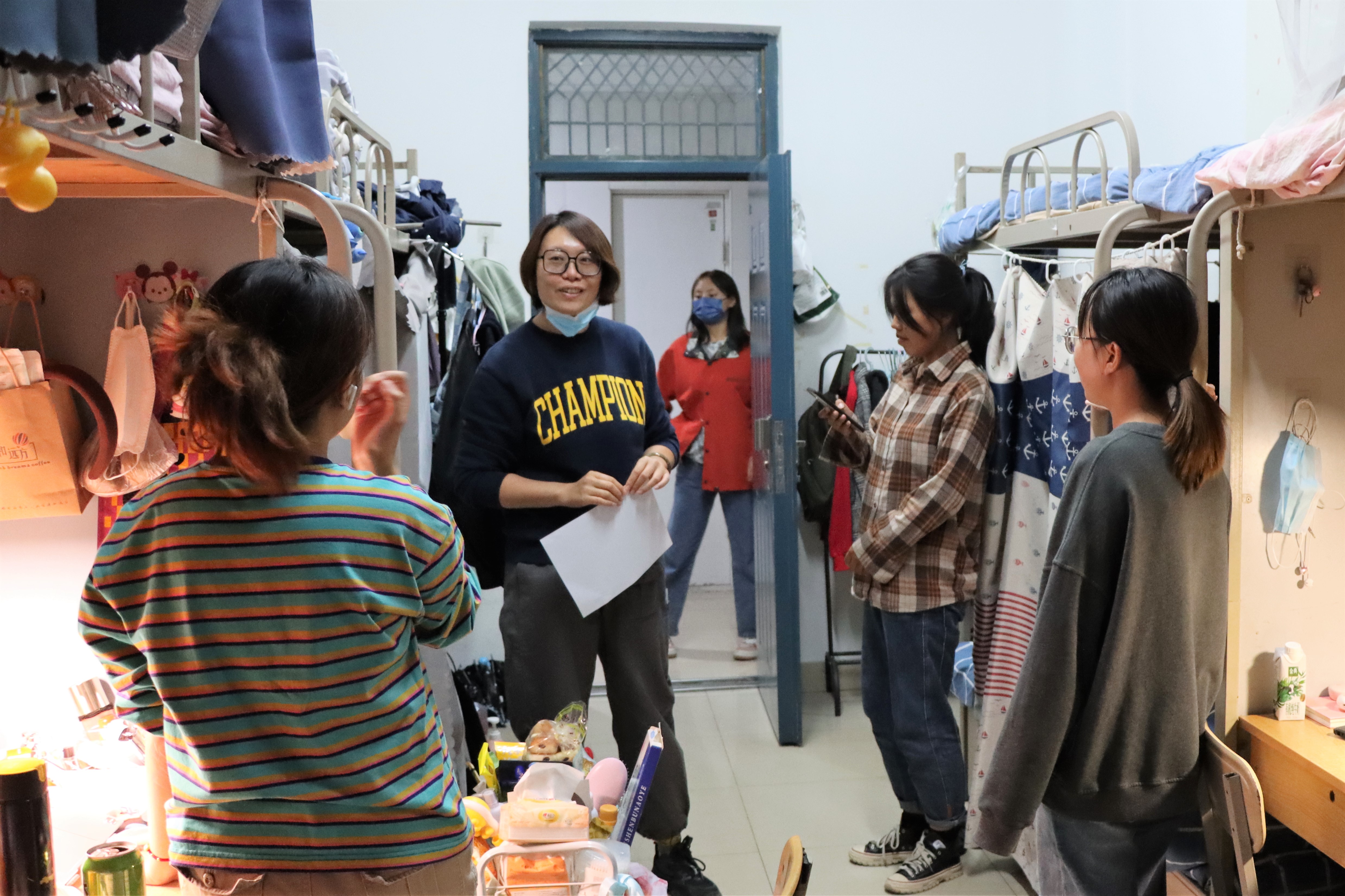 在学生宿舍,杨扬询问同学们对疫情防控和线上课程的看法与观点,鼓励大家以积极的心态面对,并提醒大家为线上上课做好准备,以积极良好的学习态度认真上好每一节课。同时,杨扬十分关心同学们的情绪与生活,她叮嘱同学们如果感到不舒服、不开心,要及时与同学、家长、老师沟通联系。付晓晨也提醒疫情防控期间要严格遵守各项防控规定,做好个人防护,勤开窗通风,定期消毒,共同努力把疫情对生活和学业的影响降到最低。