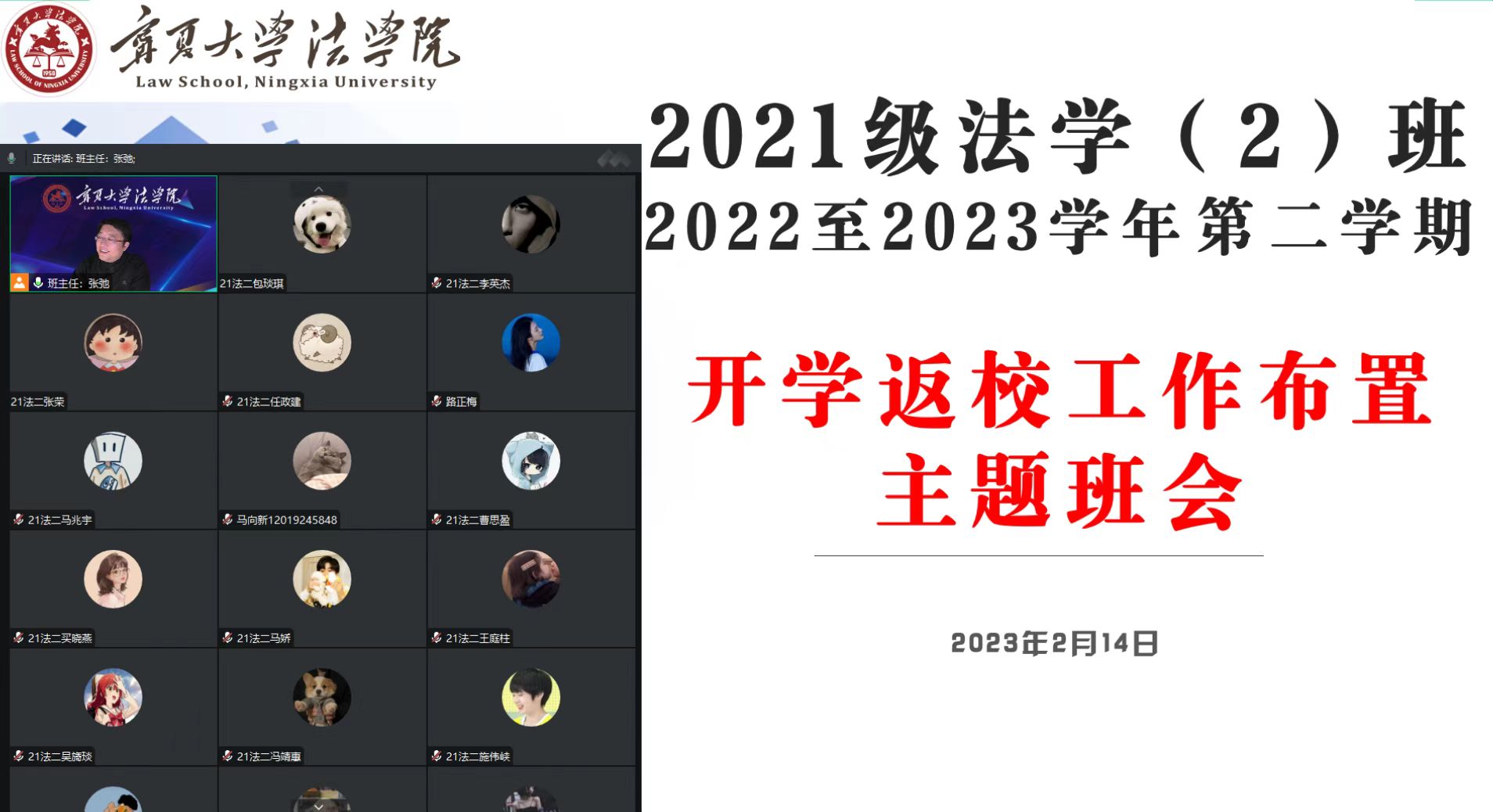 冬去春来,岁月辗转成歌,时光流逝如花,冬挥去,春归来,告别了漫长的寒假,新的旅程正向我们款款走来。为贯彻落实教育部、自治区教育厅和学校有关2023年春季学期开学工作要求,切实做好学生开学返校和疫情防控工作,我院组织各班召开春季学期开学返校及疫情防控工作主题班会。