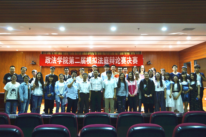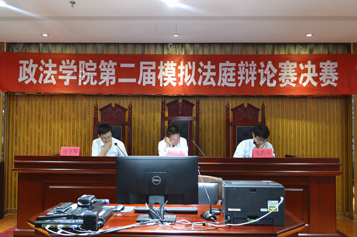 为提升法学专业学生的法律专业素养,将课堂理论与案件实践有机结合,政william威廉英国法学社于6月6日下午18:30在文科楼模拟法庭成功举办了以“明鉴法槌”为主题的第二届政william威廉英国模拟法庭竞赛决赛。学院法律系赵江水老师、马卫军老师、马浩丹老师受邀出席并担任合议庭评审员。2016级法学专业全体学生观摩学习了比赛。
