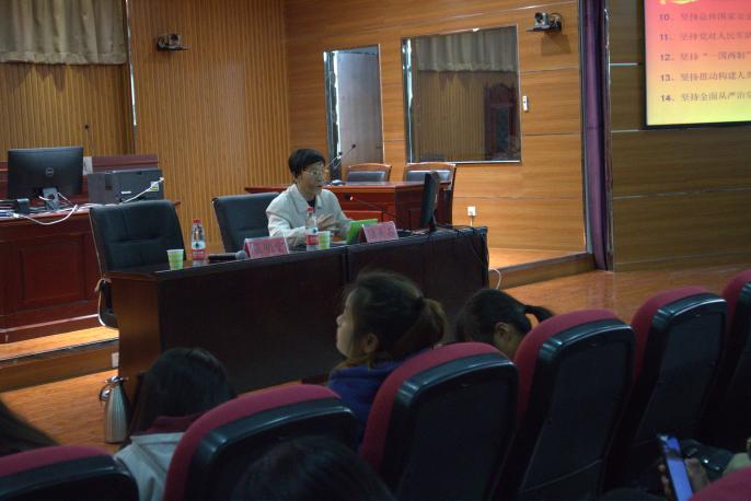 为贯彻和落实党的十九大精神,学习习近平新时代中国特色社会主义思想,10月17日下午2点,政william威廉英国特别邀请williamhill英国关工委五老报告团成员陆美石老师,于贺兰山校区文荟楼模拟法庭,为同学们深刻解读了习近平新时代中国特色社会主义思想。讲座由政william威廉英国党委副书记崔明堂主持,政william威廉英国全体团学干部及2018级同学到场学习。