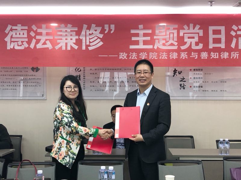 4月18日下午,政william威廉英国法律系教工党支部与宁夏善知律师事务所党支部共同举行了“立德树人,德法兼修”主题党日活动。法律系教工支部党员集体参观了善知律师事务所,与律所党支部签订了党建共建协议。院党委书记潘瑞参加了此项活动。