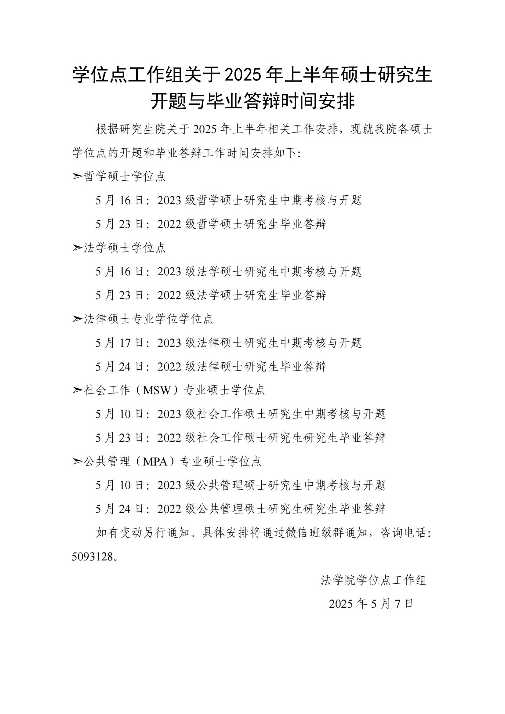 关于2025年上半年硕士研究生开题与毕业答辩时间安排