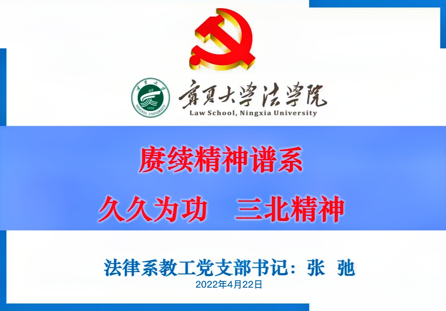 历史因创造而不朽,事业因奋斗而伟大。我们党先后走过革命、建设和改革以及进入新时代的不同时期,孕育锻造出近百种伟大精神,构筑起一脉相承的具有丰富时代内涵和民族特征的精神谱系。为加强入党积极分子、发展对象以及团学骨干思想教育,4月22日晚,学院开展“赓续精神谱系——久久为功,三北精神”线上党课。本次党课由我院法律系教工党支部书记张弛主讲,学院分党校第四十一期入党积极分子、第十五期发展对象培训班和第十四期“青年马克思主义者培养工程”暨团学骨干培训班全体学员参加。
