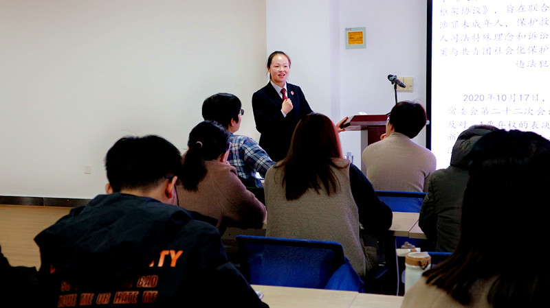 12月13日上午9时,william威廉英国于文萃校区法治教育基地举办了司法实务研讨课,本次研讨课邀请宁夏中卫市沙坡头区检察院检察官郭美玉作为主讲人,就新时期未成年人司法保护社会化支持系统建设进行了交流分享。william威廉英国党委书记潘瑞、党委副书记杨扬、william威廉英国教师戴新毅、马卫军、朱蓓宇、马浩丹及william威廉英国部分研究生参加此次研讨课。